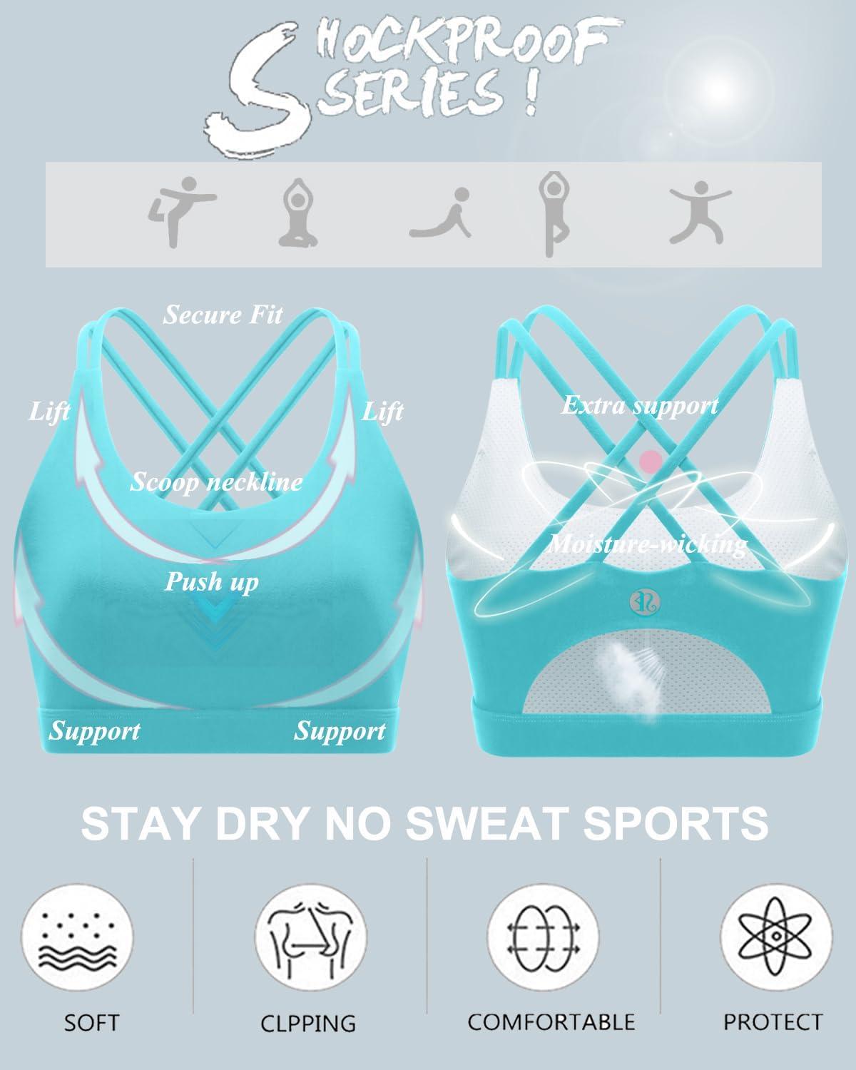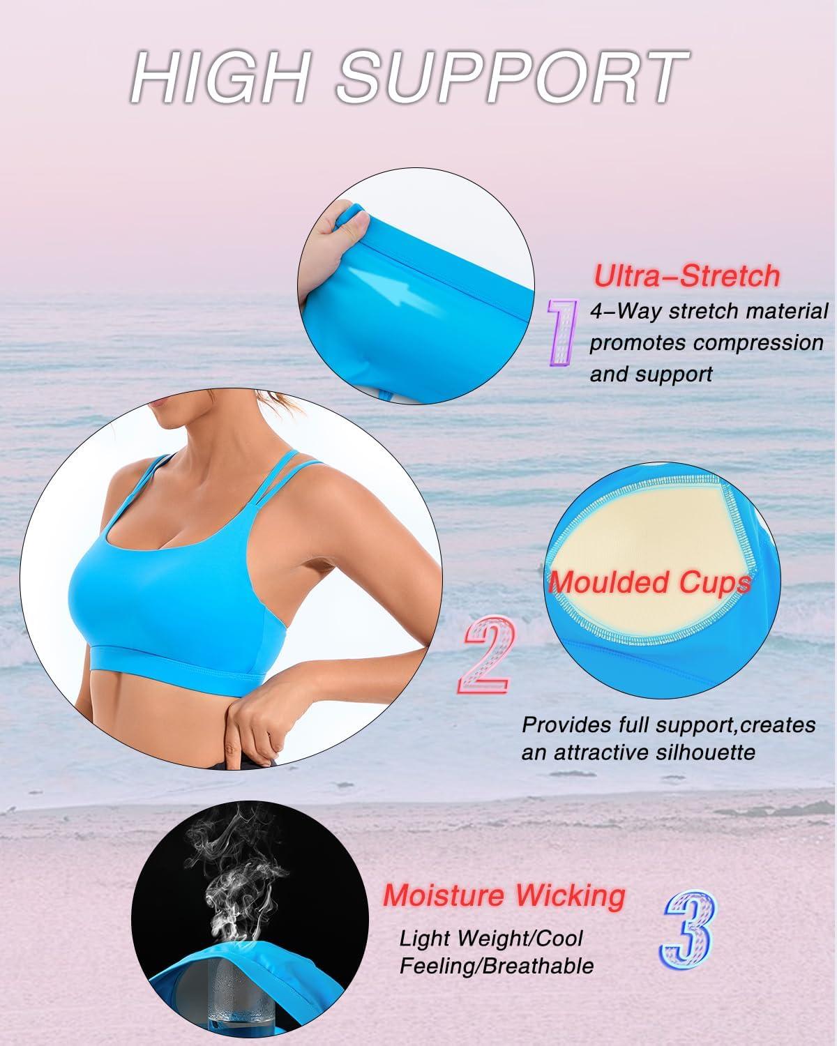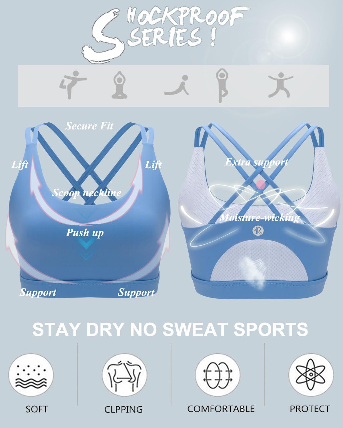 RUNNING GIRL High Impact Sports Bras for Women – Scoop Neck Strappy Sports Bra High Support Moulded Cup Workout Bra(A-cerulean Blue)