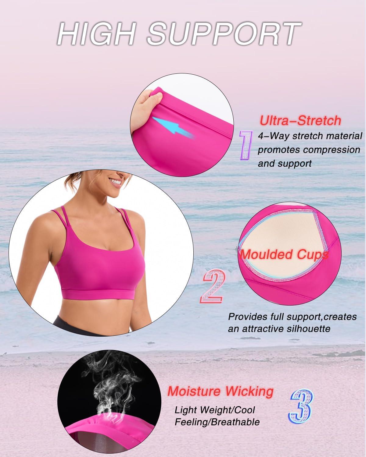 RUNNING GIRL High Impact Sports Bras for Women – Scoop Neck Strappy Sports Bra High Support Moulded Cup Workout Bra(A-hot Pink)