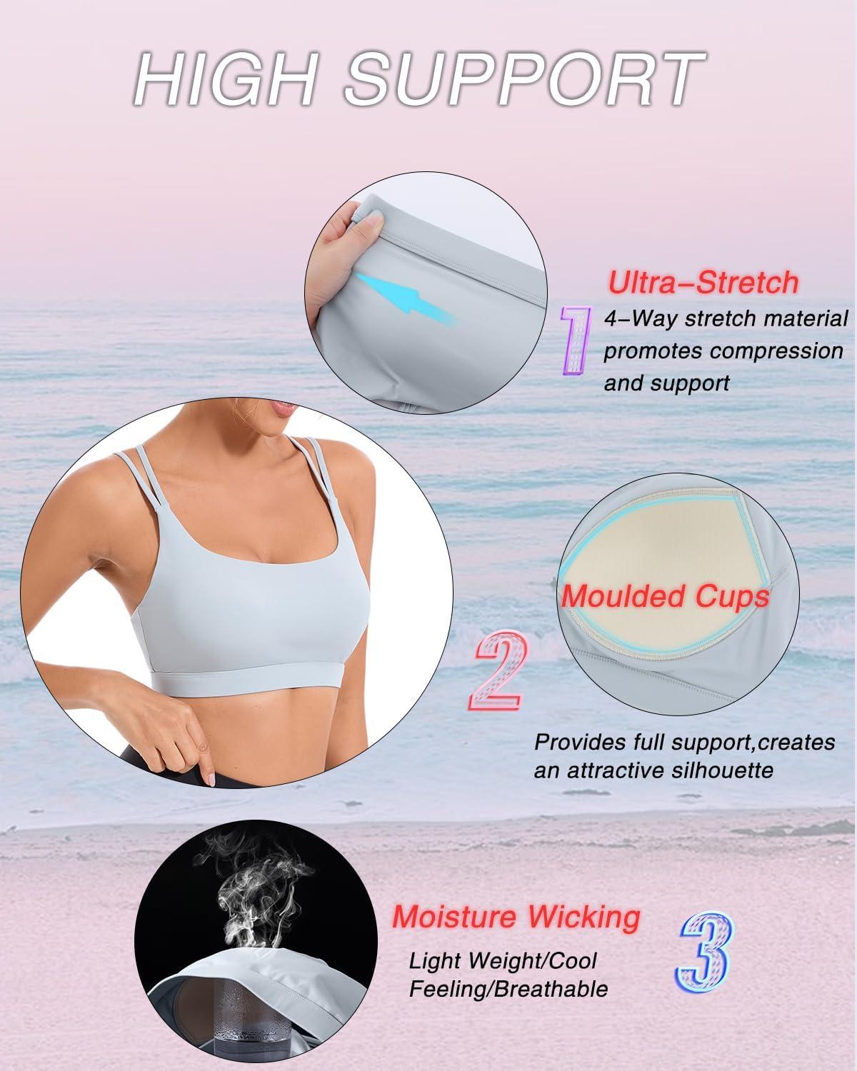 RUNNING GIRL High Impact Sports Bras for Women – Scoop Neck Strappy Sports Bra High Support Moulded Cup Workout Bra(B-icy Grey)