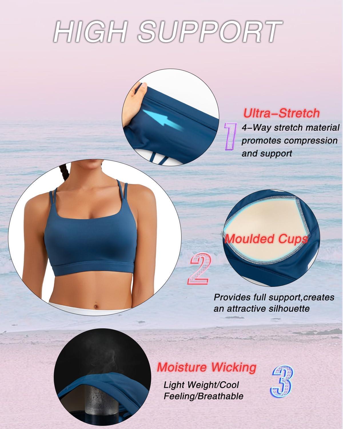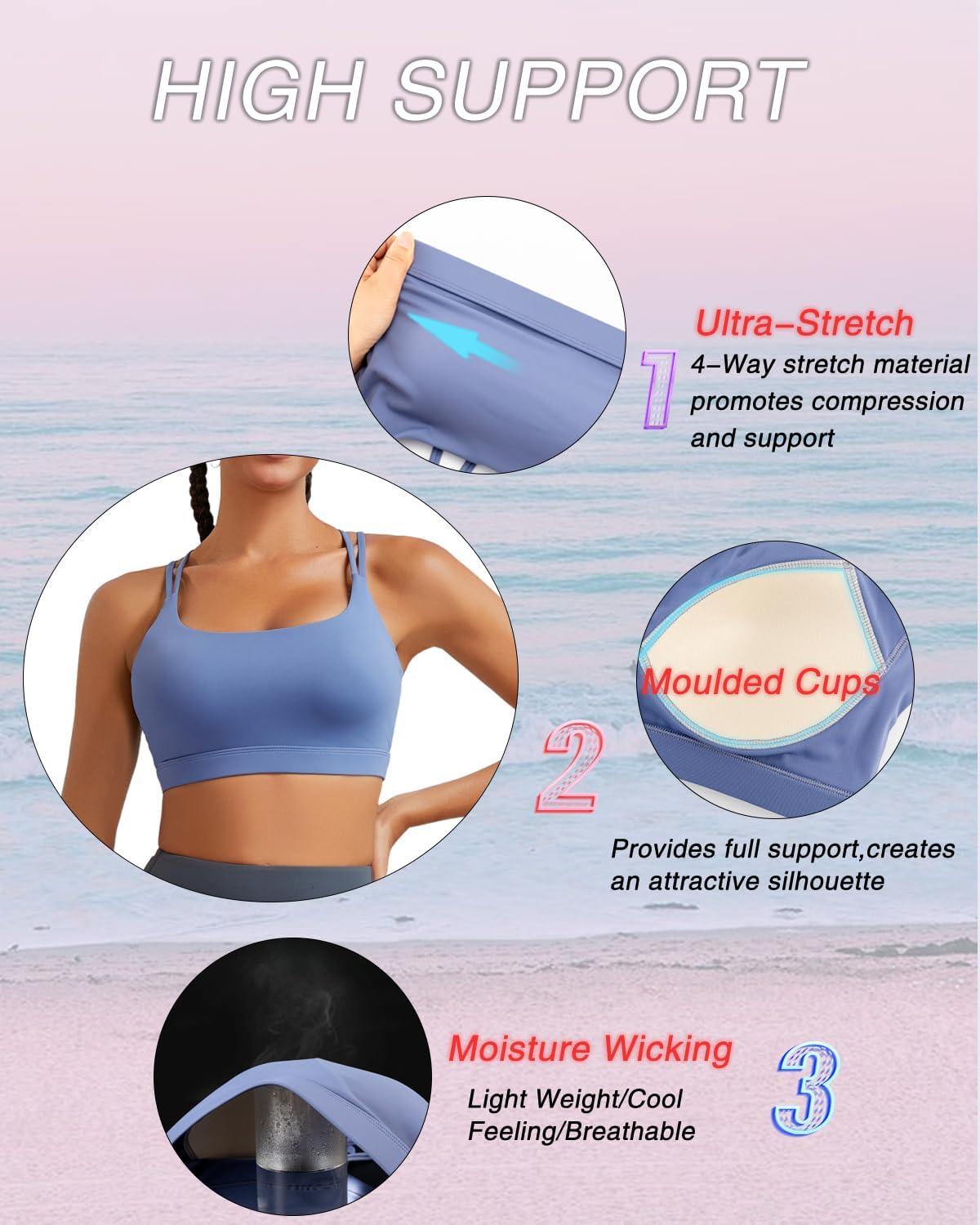 RUNNING GIRL High Impact Sports Bras for Women – Scoop Neck Strappy Sports Bra High Support Moulded Cup Workout Bra(B-wild Indigo)