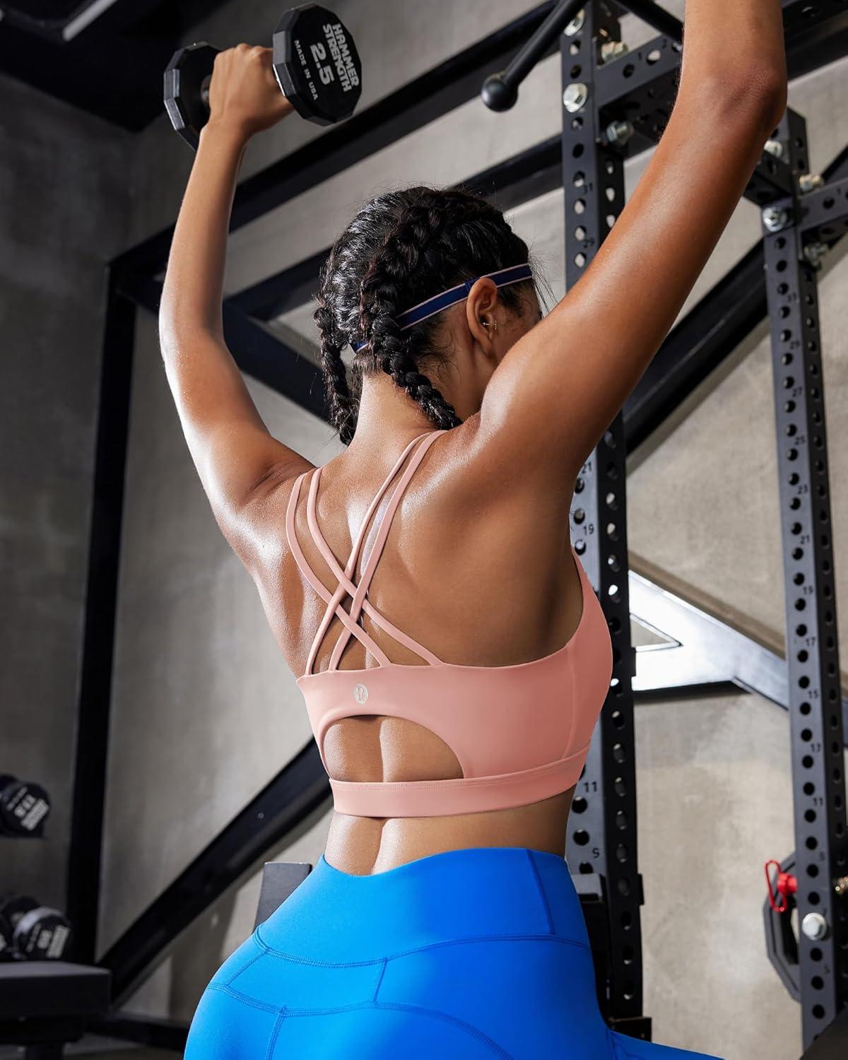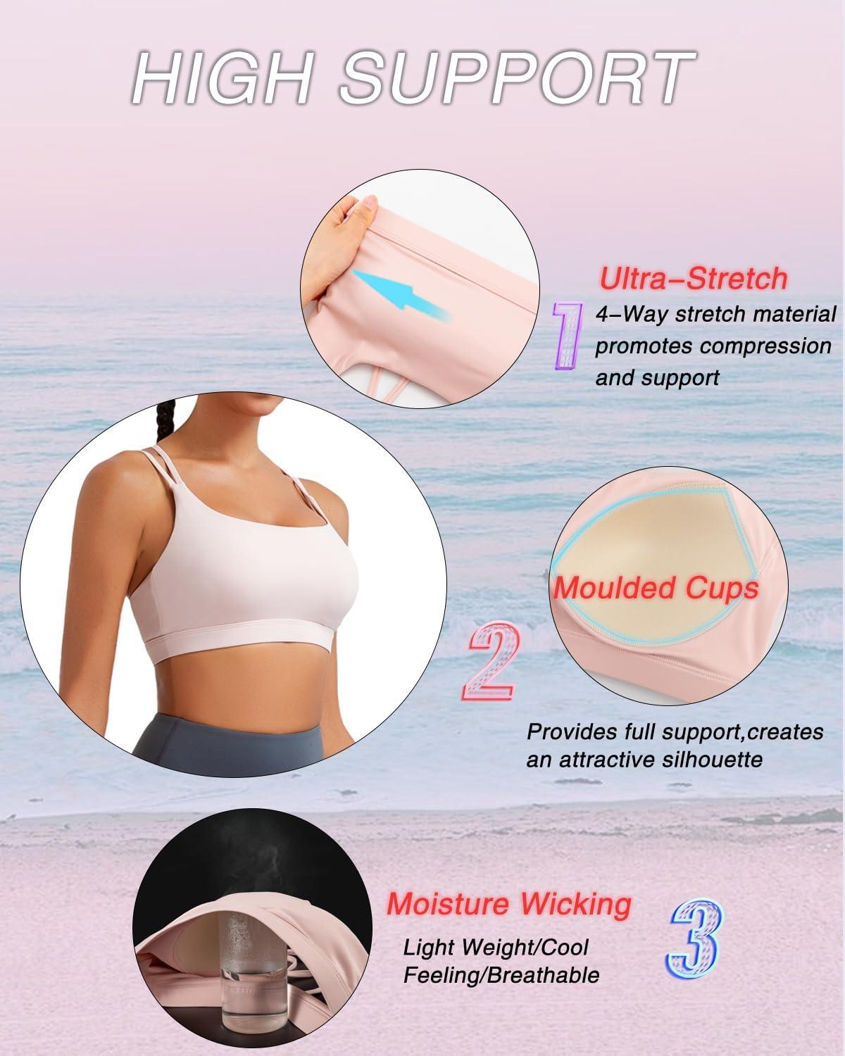 RUNNING GIRL High Impact Sports Bras for Women – Scoop Neck Strappy Sports Bra High Support Moulded Cup Workout Bra(A-flush Pink)