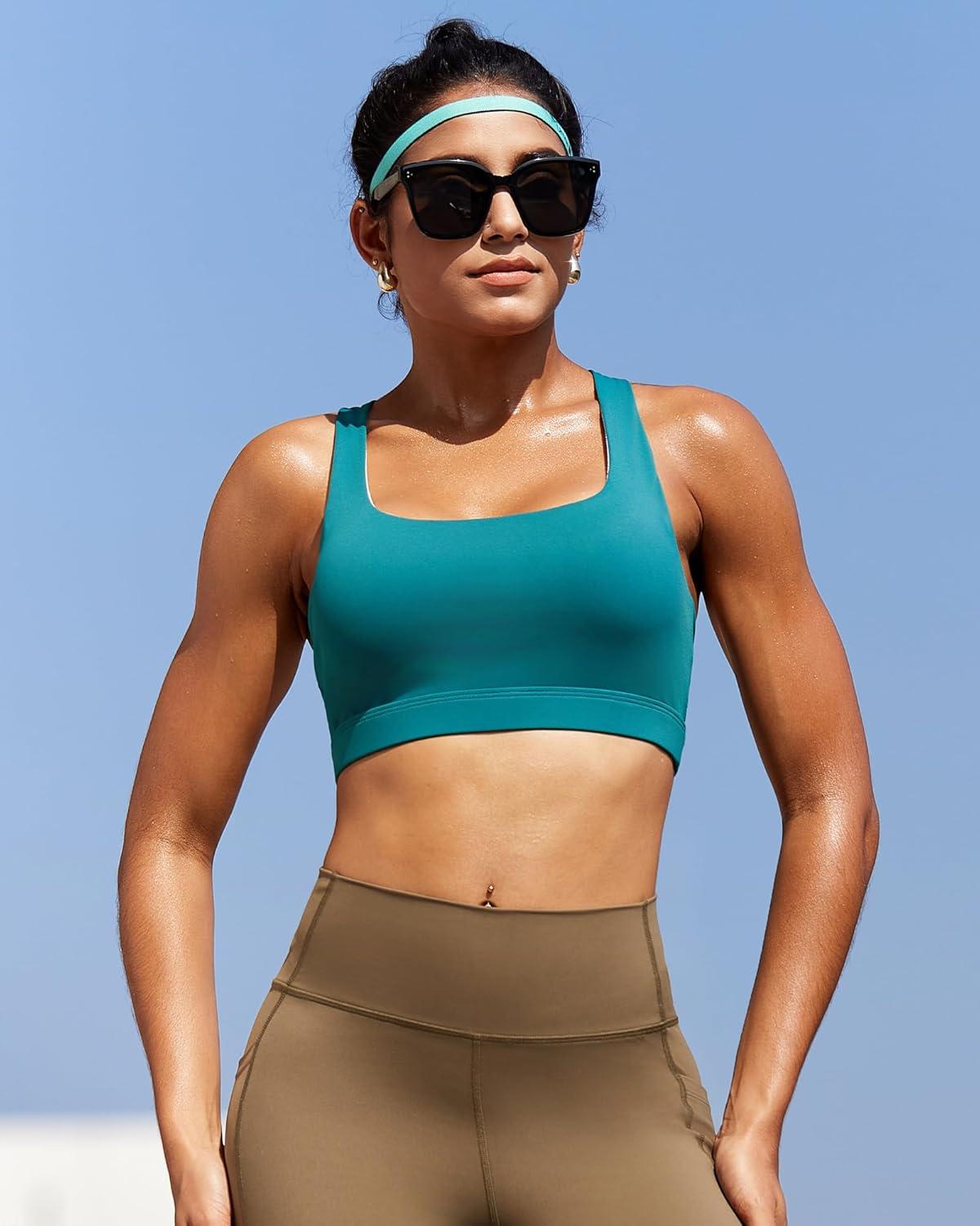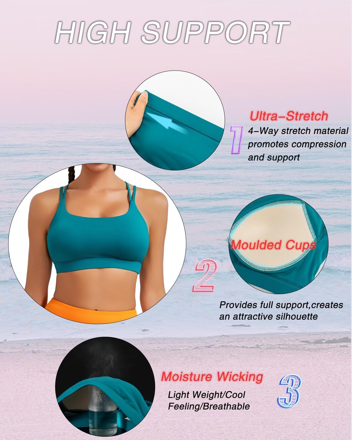 RUNNING GIRL High Impact Sports Bras for Women – Scoop Neck Strappy Sports Bra High Support Moulded Cup Workout Bra(B-storm Teal)