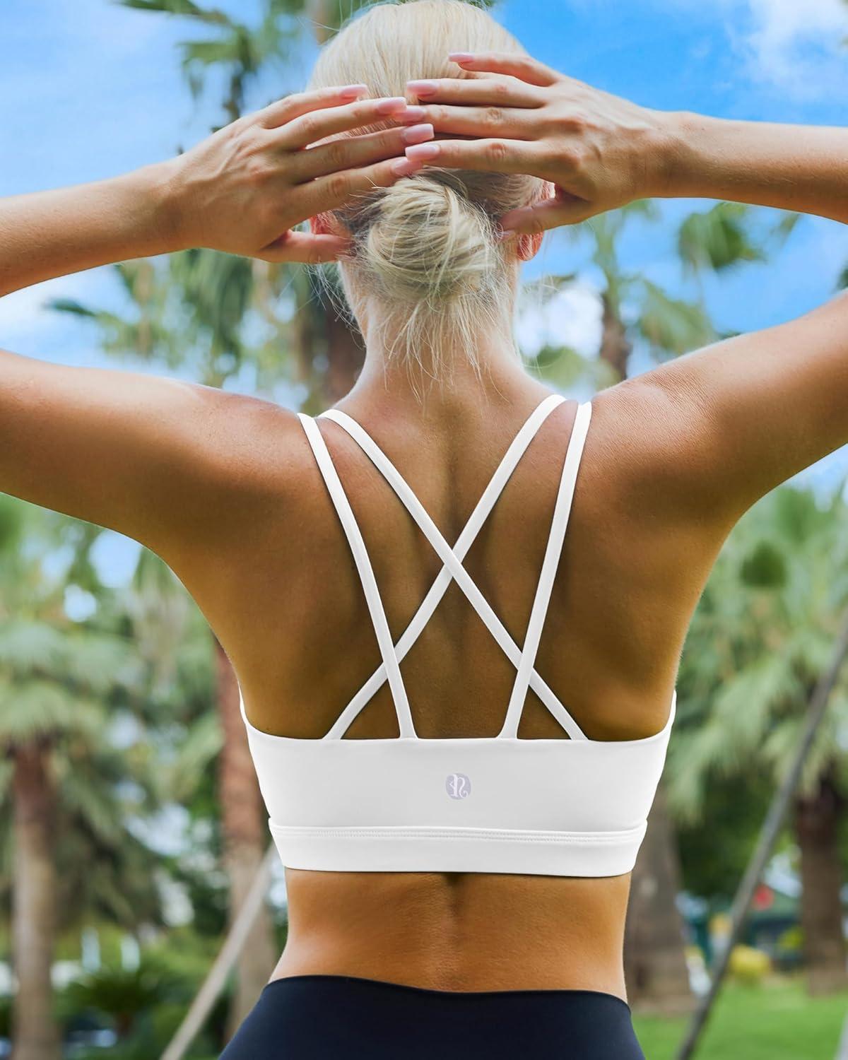 RUNNING GIRL Sports Bras for Women,Padded Sports Bra Tank Top Sexy Crisscross Back High Impact Longline Workout Yoga Bra(2-white)