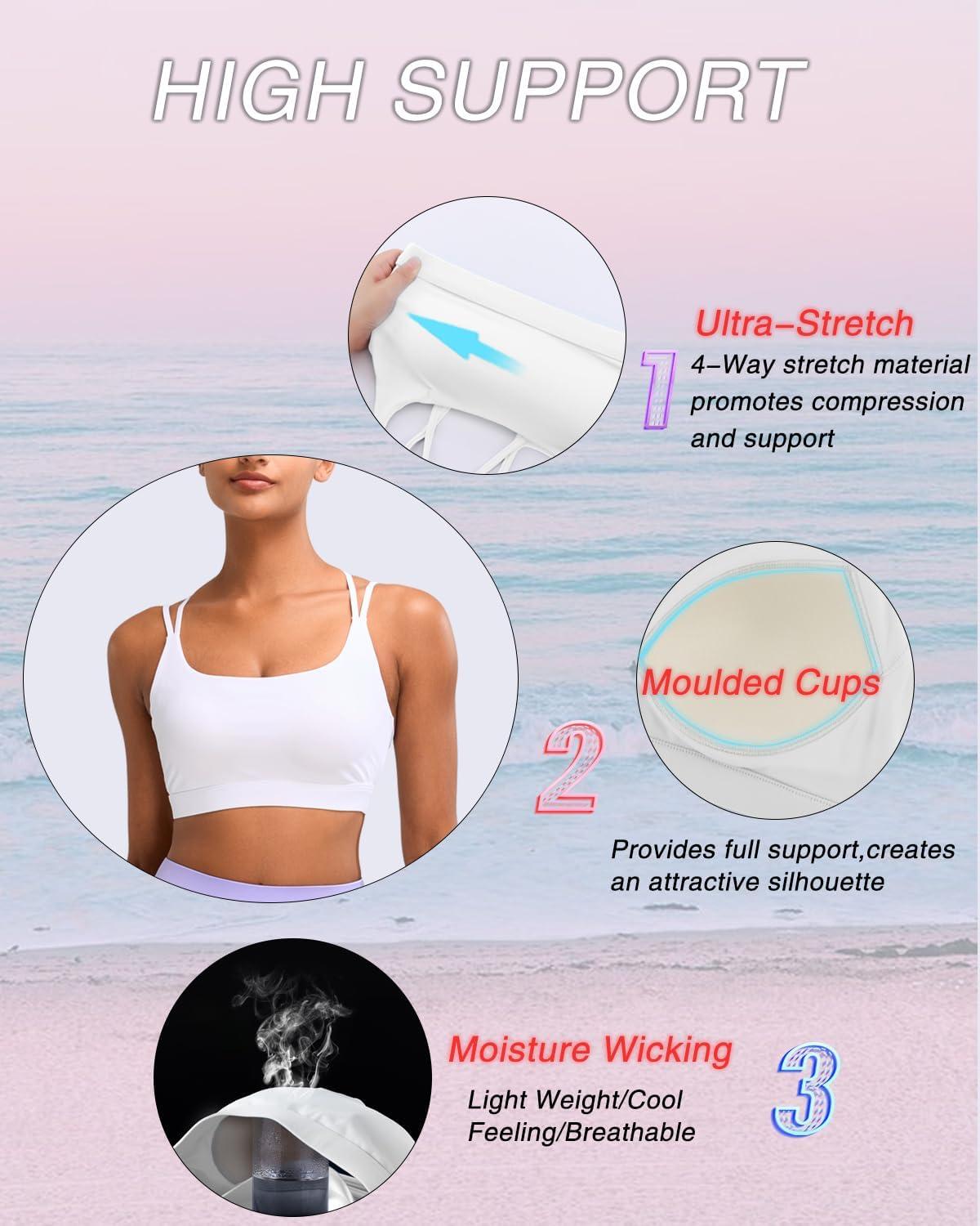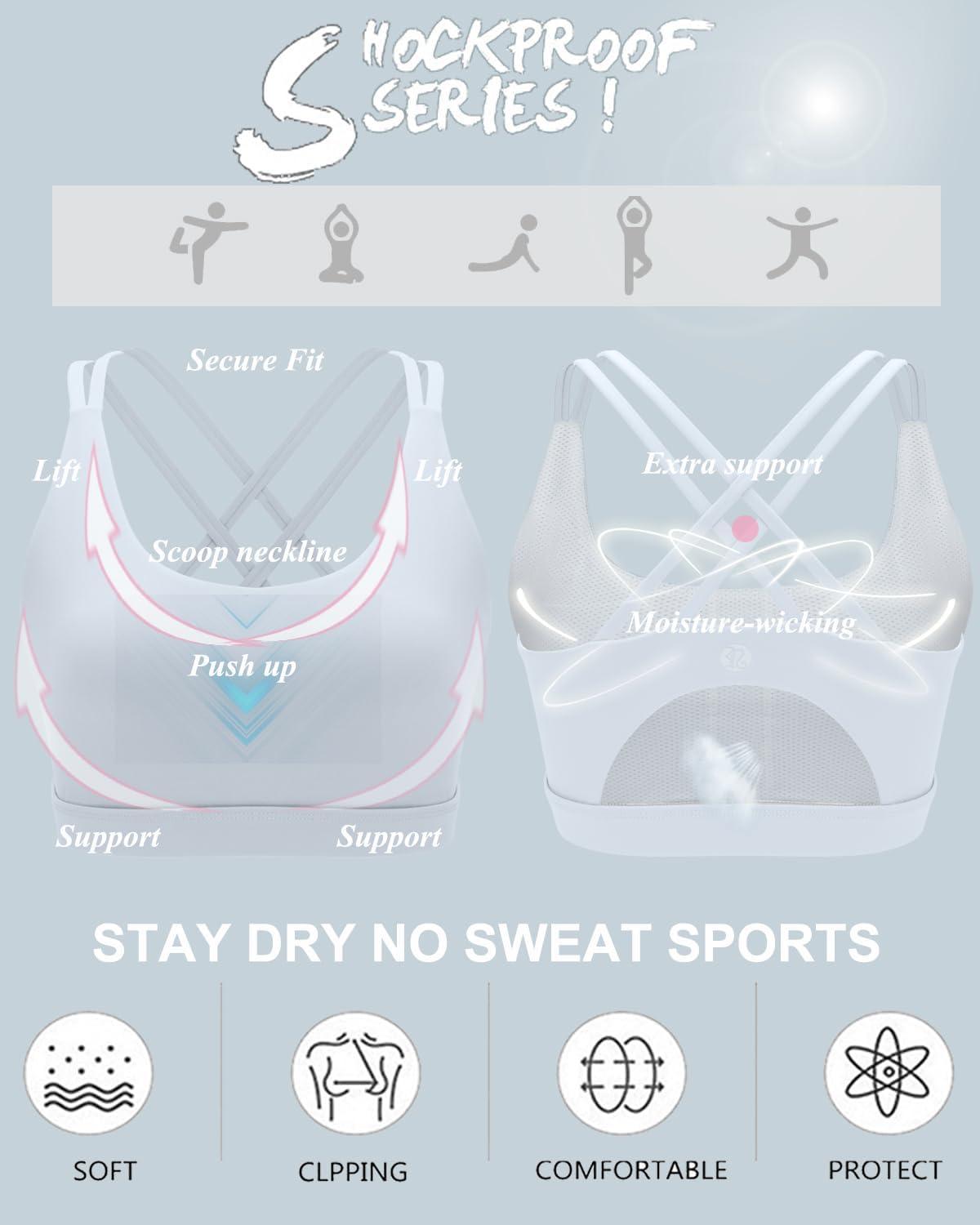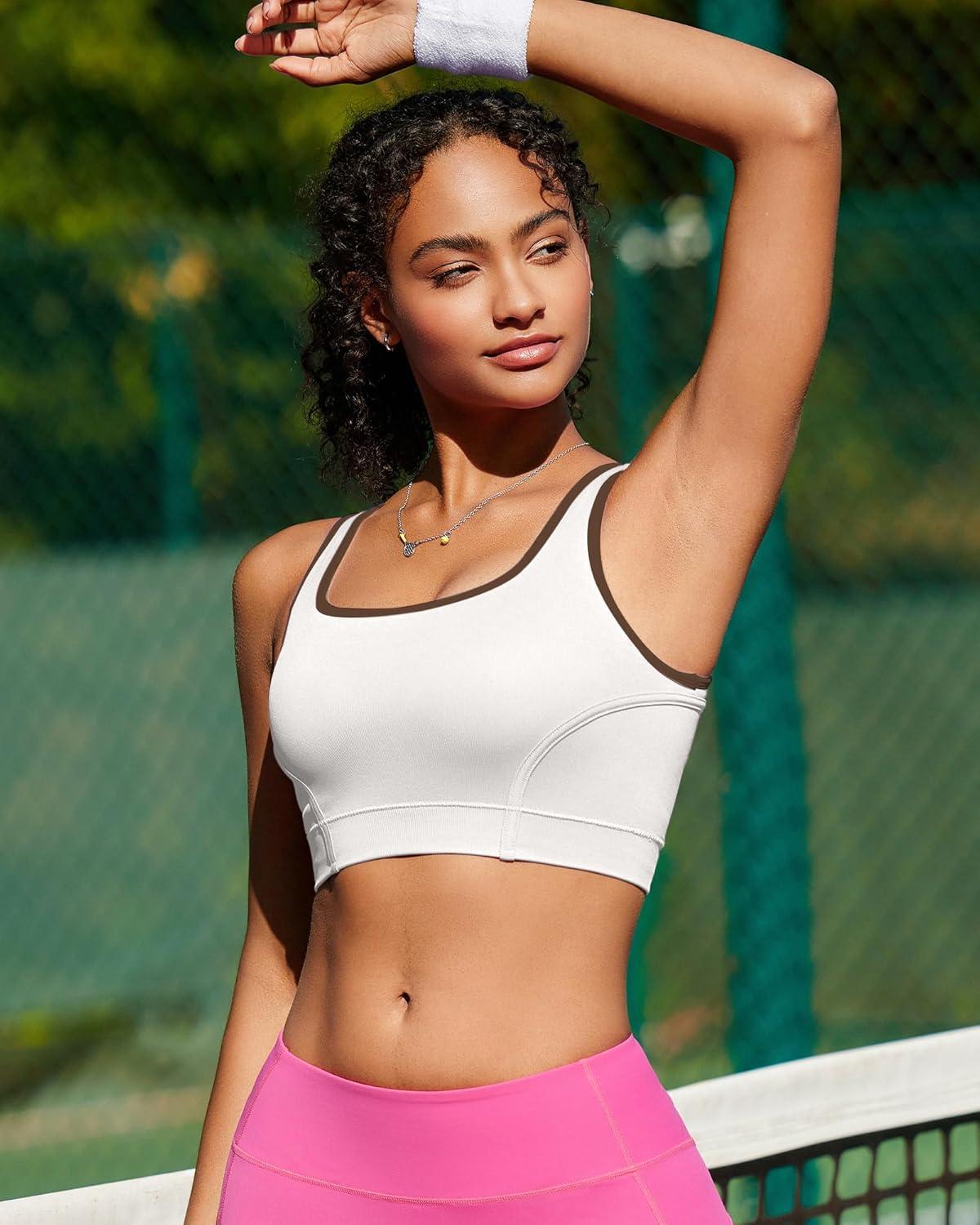 RUNNING GIRL High Impact Sports Bras for Women – Scoop Neck Strappy Sports Bra High Support Moulded Cup Workout Bra(B-white)