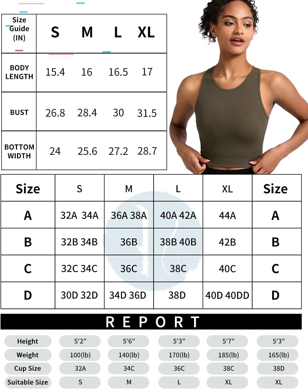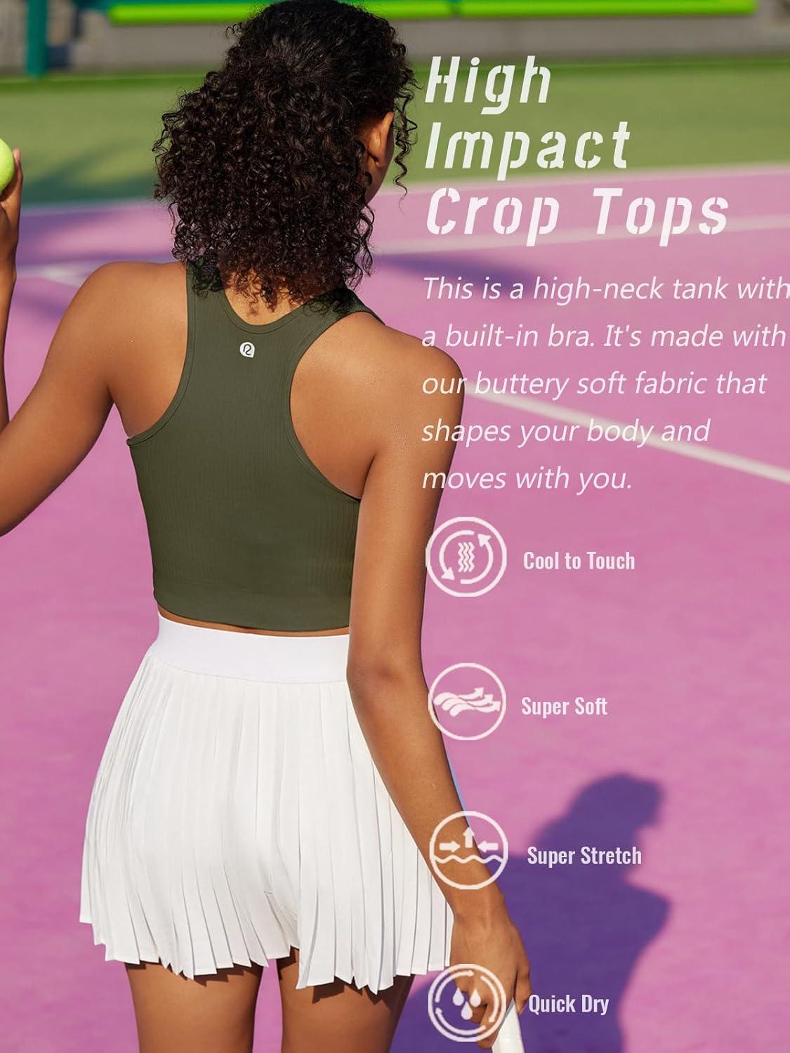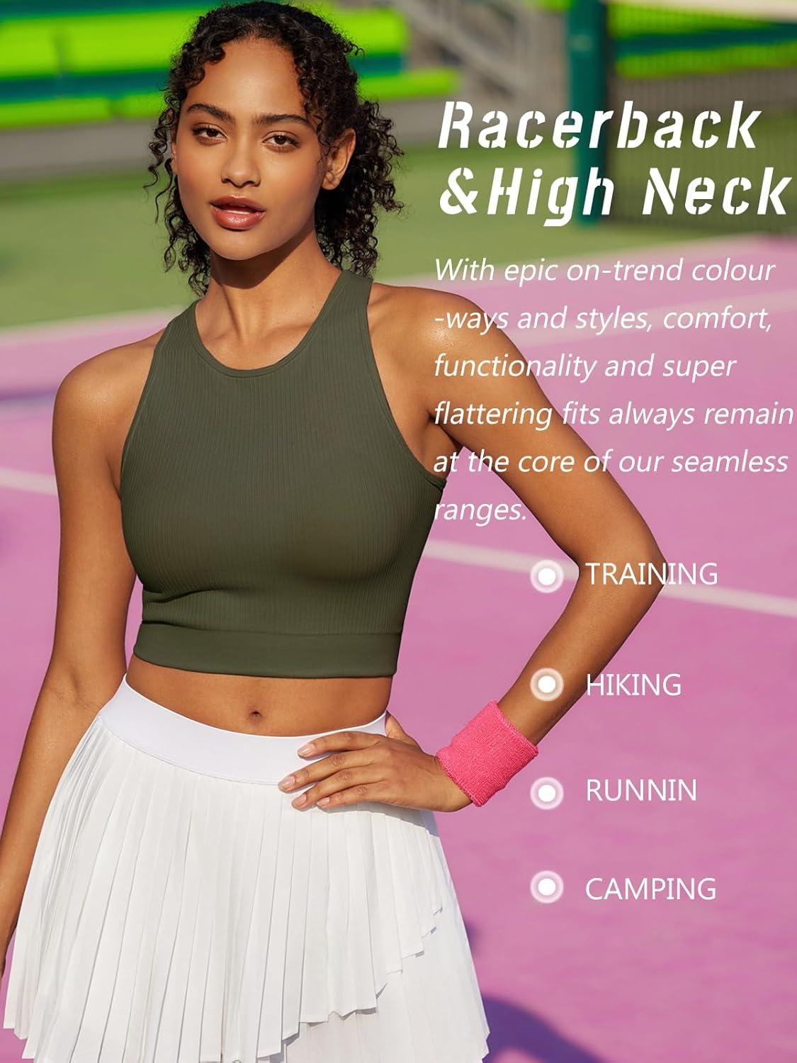RUNNING GIRL Sports Bras for Women High Impact Seamless Ribbed Longline High Neck Workout Crop Tank Tops Padded(A-army Green)