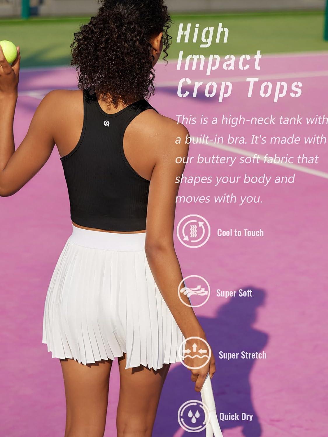 RUNNING GIRL Sports Bras for Women High Impact Seamless Ribbed Longline High Neck Workout Crop Tank Tops Padded(A-black)