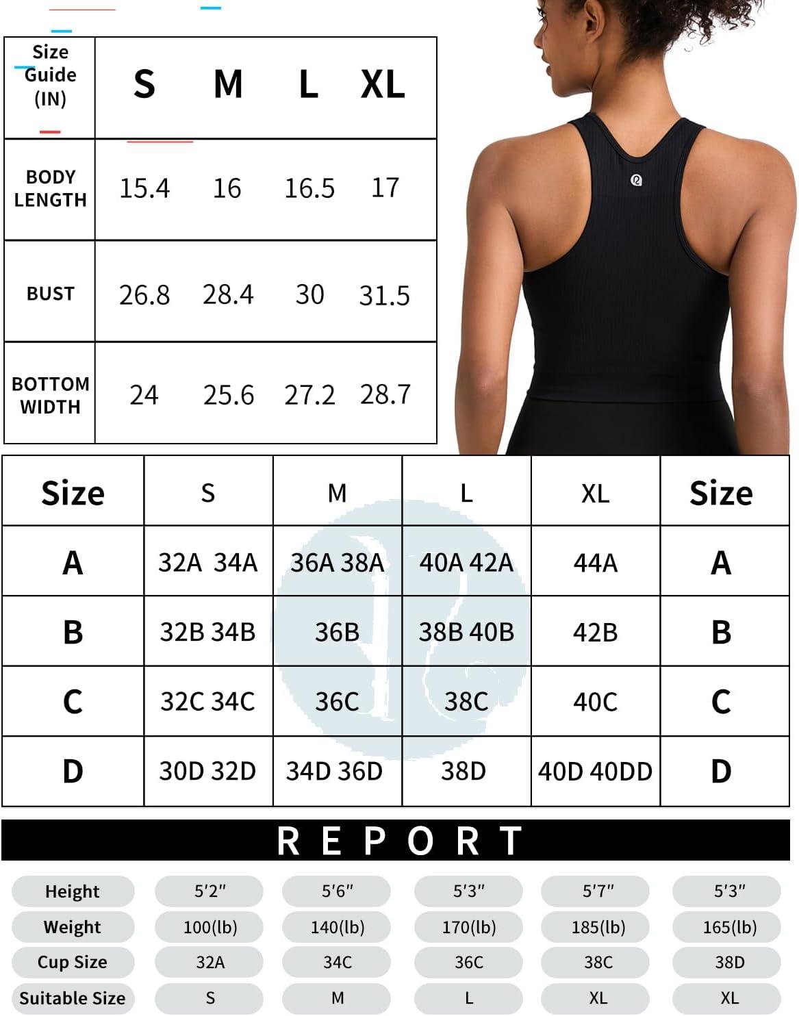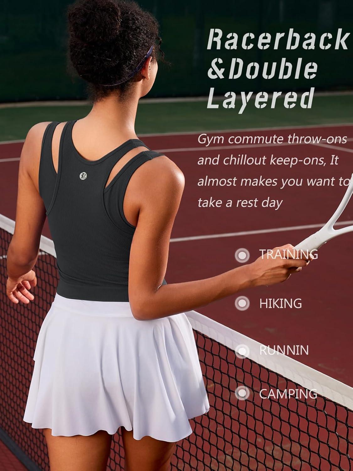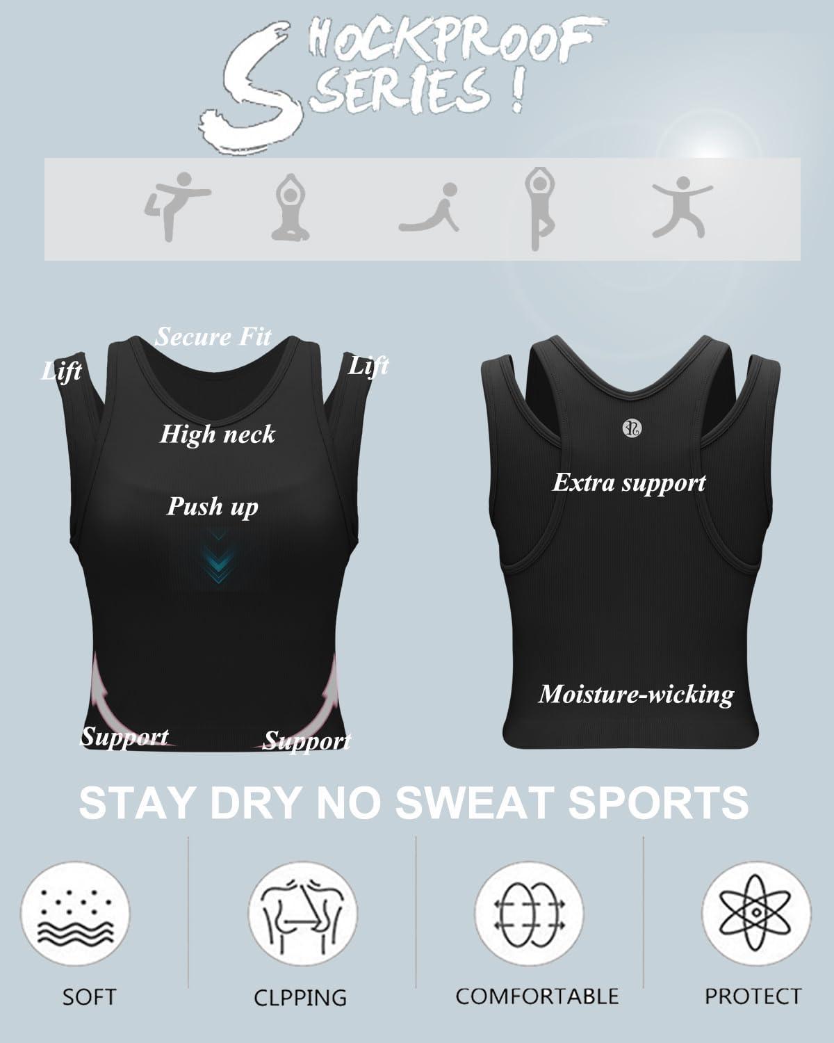 RUNNING GIRL Sports Bras for Women High Impact Seamless Ribbed Longline High Neck Workout Crop Tank Tops Padded(B-black)