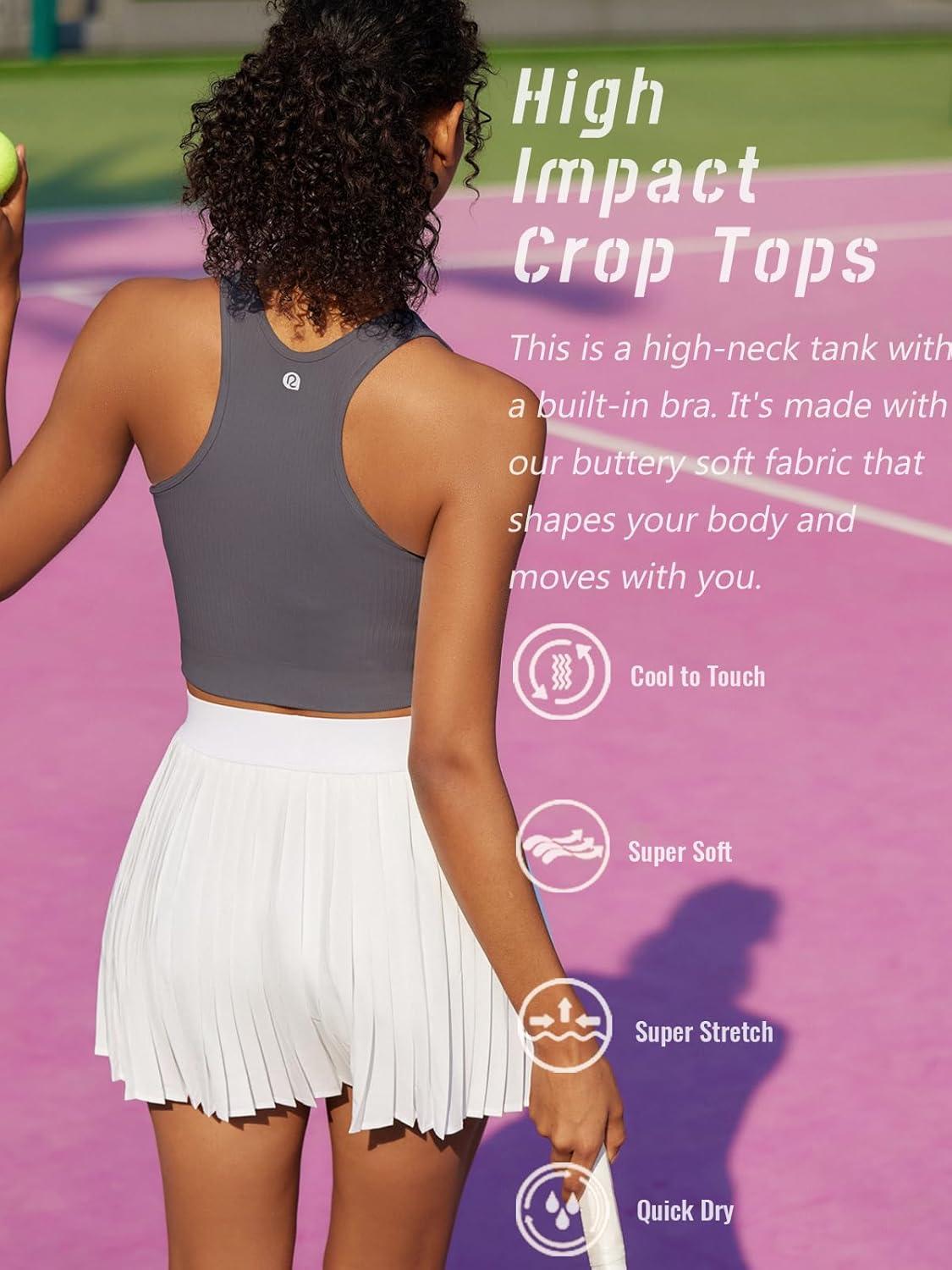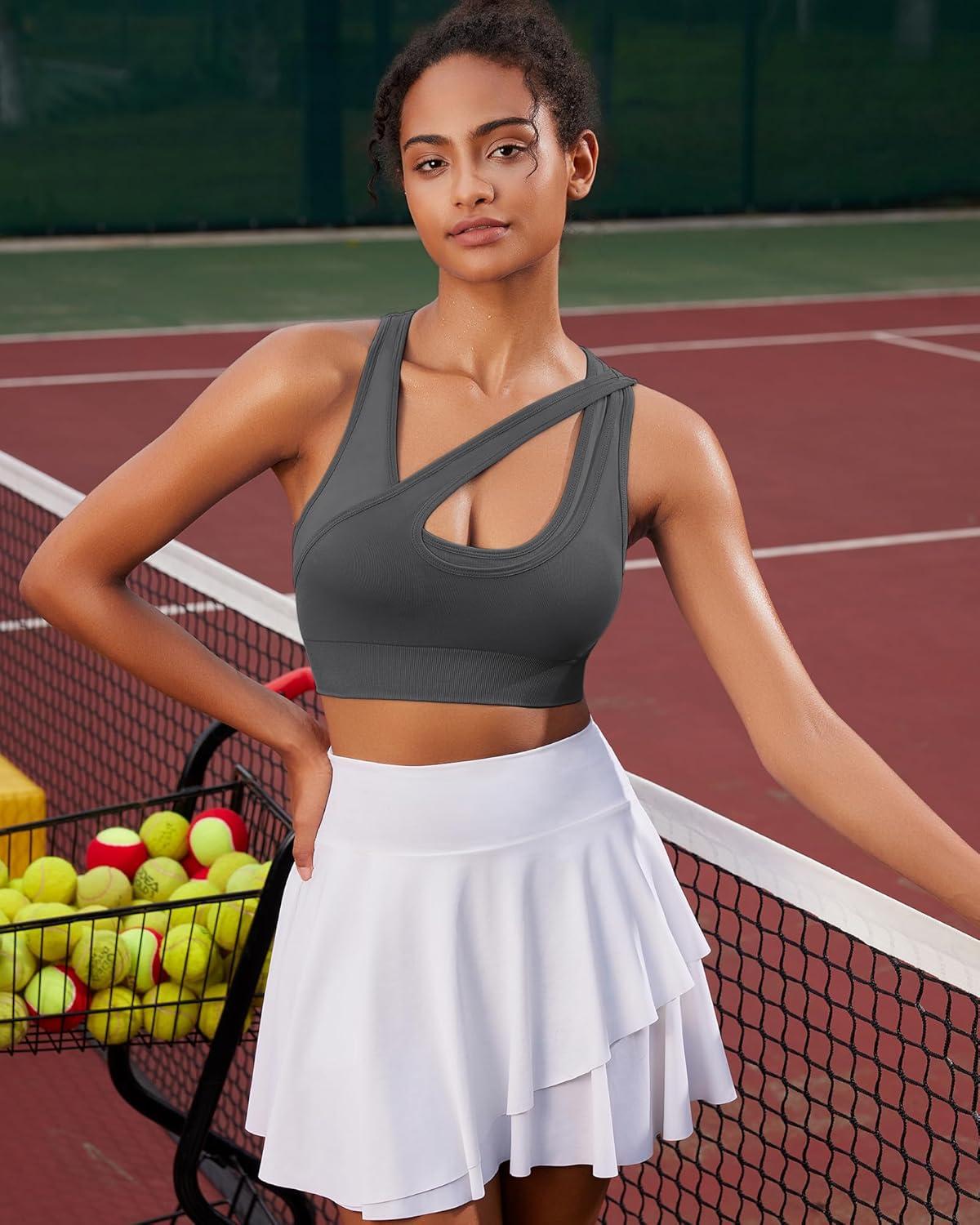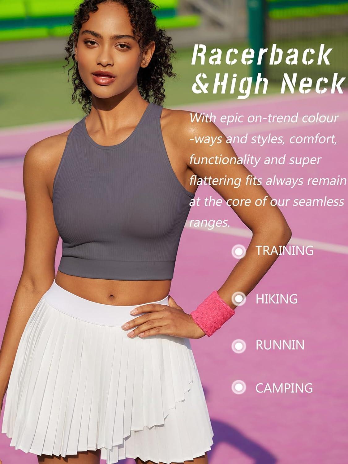 RUNNING GIRL Sports Bras for Women High Impact Seamless Ribbed Longline High Neck Workout Crop Tank Tops Padded(A-dark Grey)