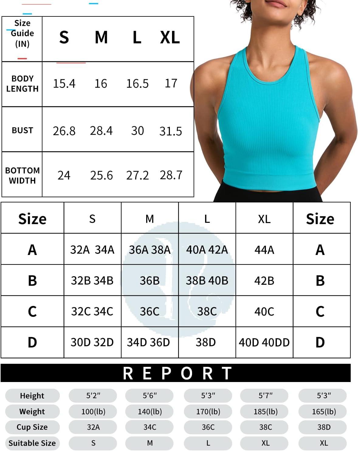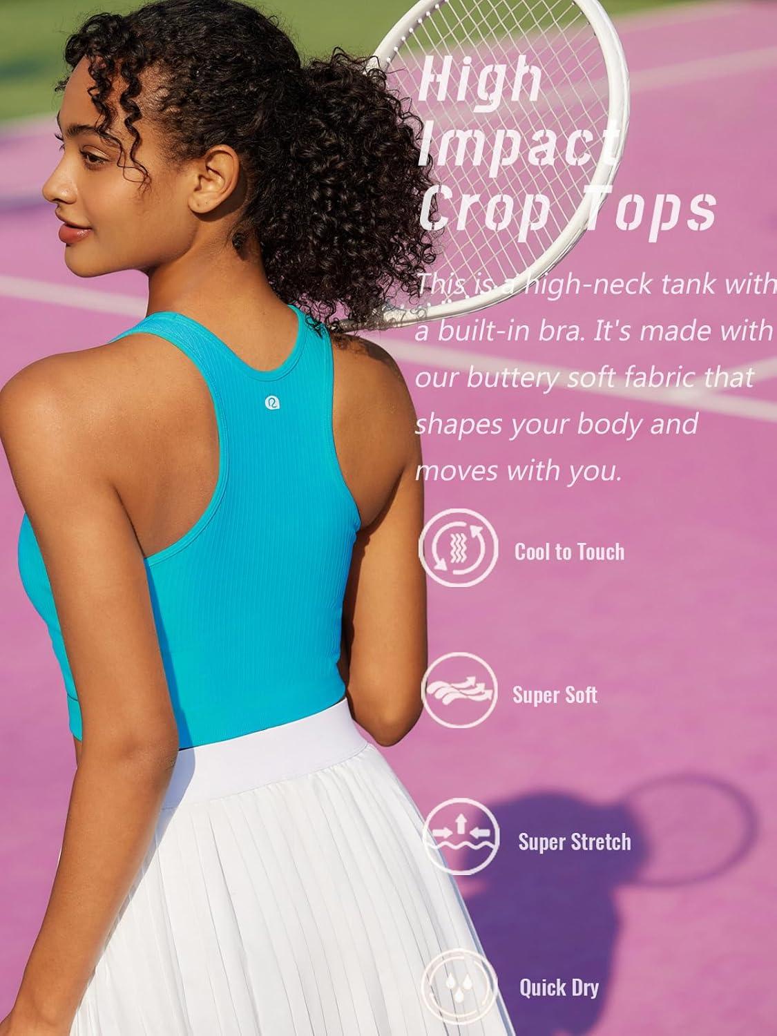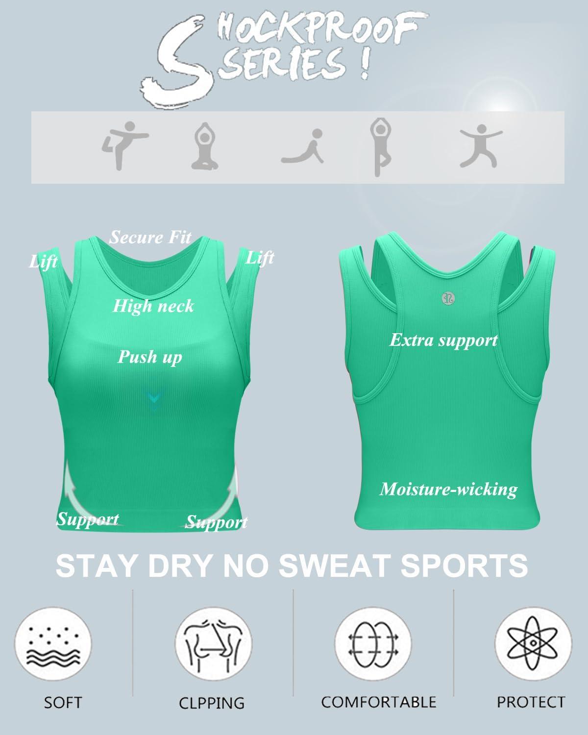 RUNNING GIRL Sports Bras for Women High Impact Seamless Ribbed Longline High Neck Workout Crop Tank Tops Padded(A-teal Lagoon)
