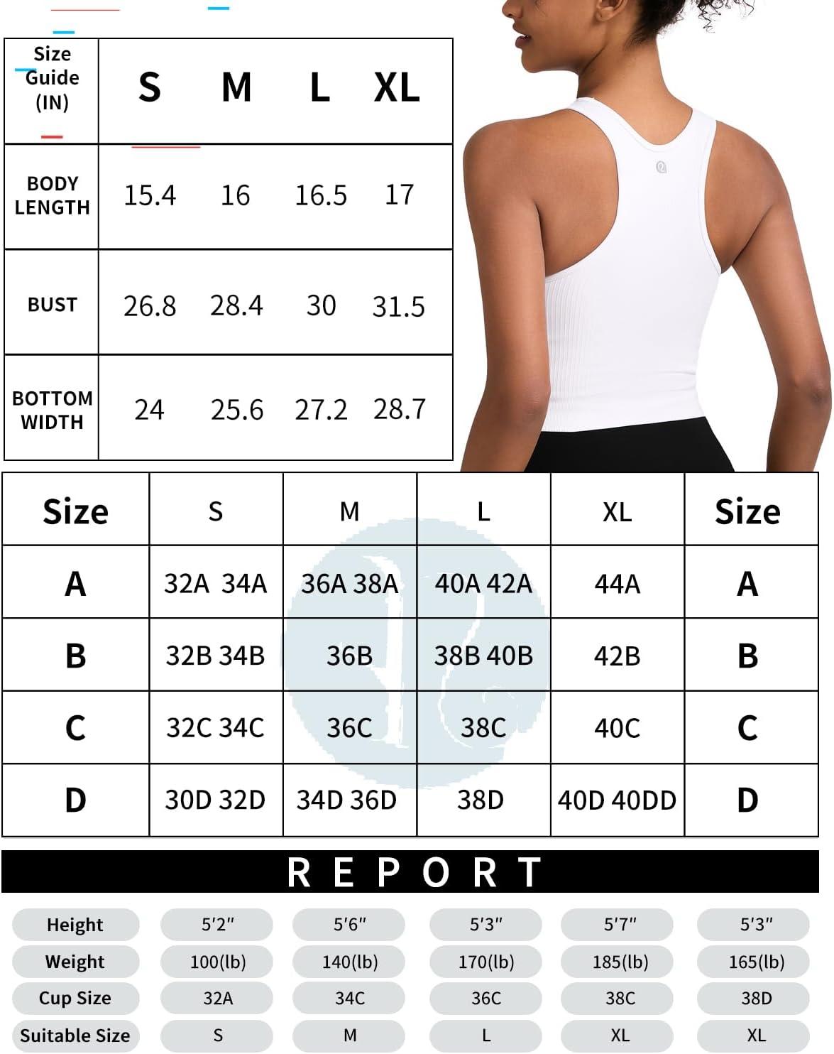 RUNNING GIRL Sports Bras for Women High Impact Seamless Ribbed Longline High Neck Workout Crop Tank Tops Padded(B-white)