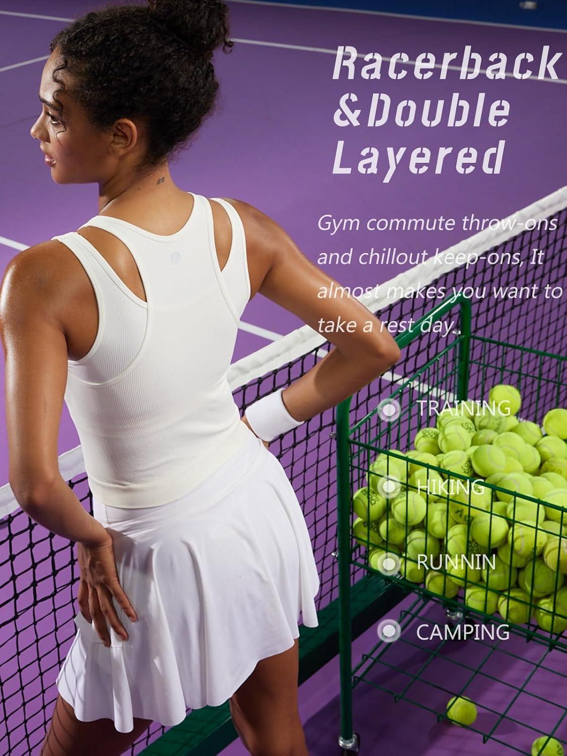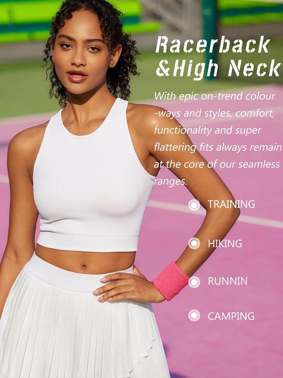 RUNNING GIRL Sports Bras for Women High Impact Seamless Ribbed Longline High Neck Workout Crop Tank Tops Padded(A-white)