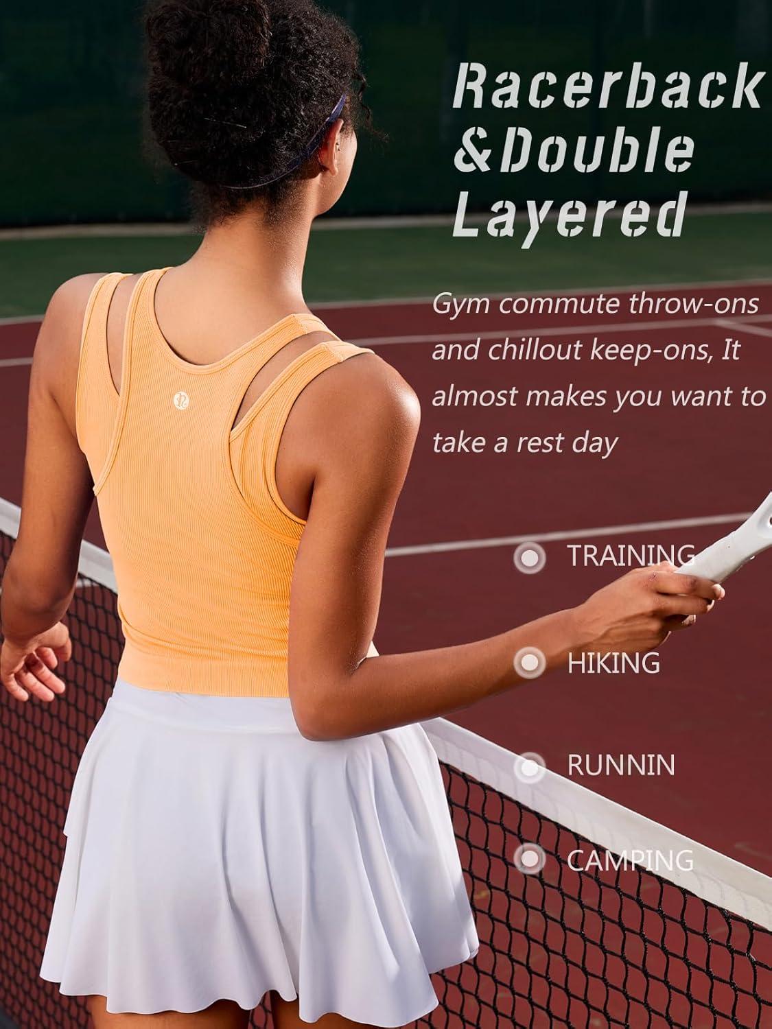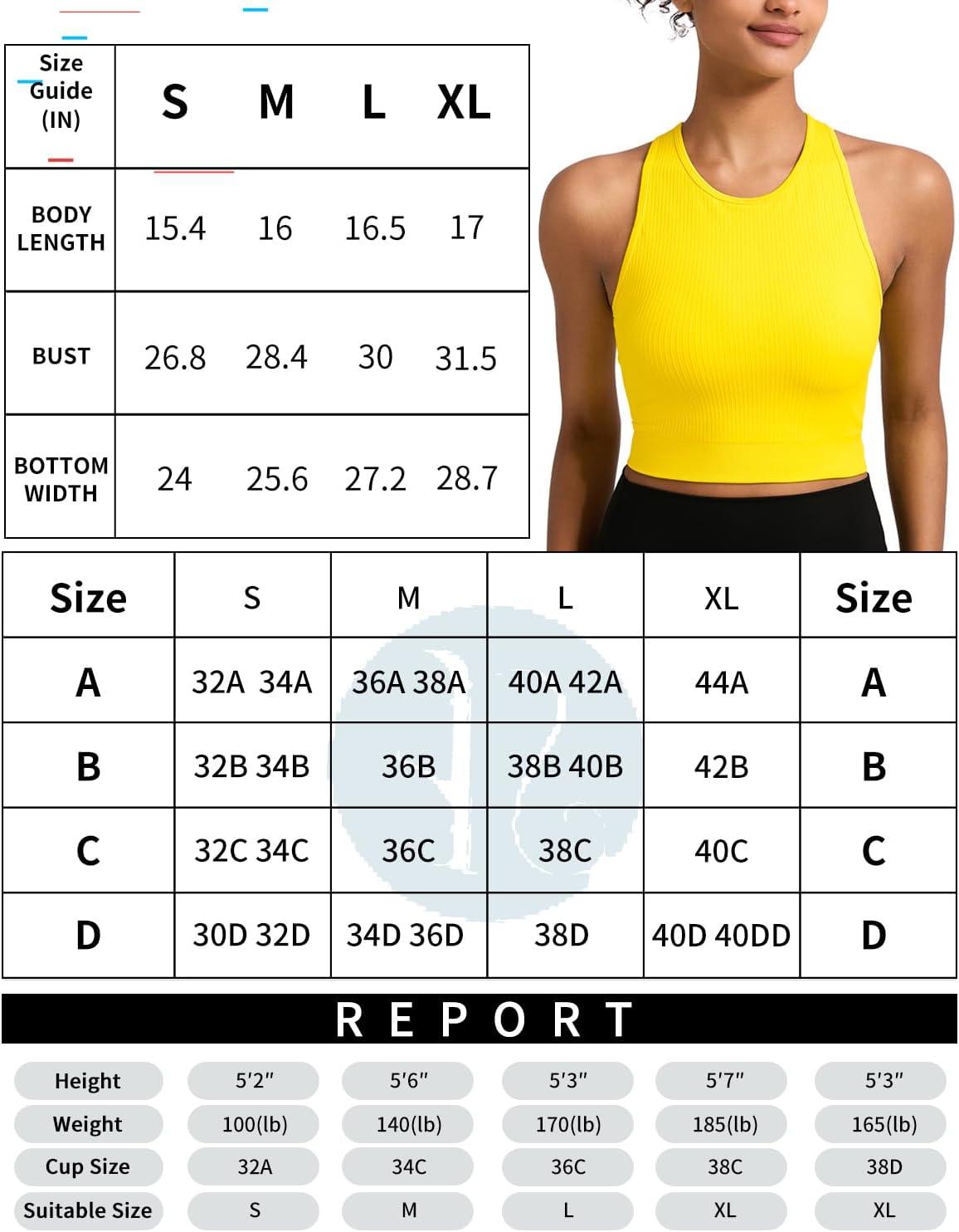 RUNNING GIRL Sports Bras for Women High Impact Seamless Ribbed Longline High Neck Workout Crop Tank Tops Padded(A-yellow)