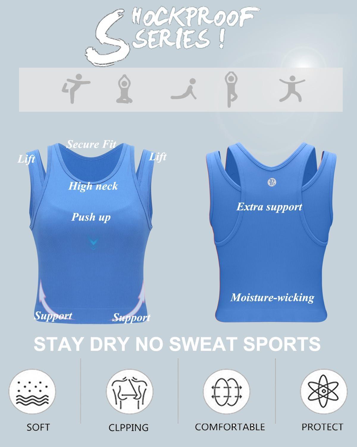 RUNNING GIRL Sports Bras for Women High Support,Seamless Ribbed Longline High Neck Sports Bra Racerback Padded Crop Top Yoga(A-bright Blue)