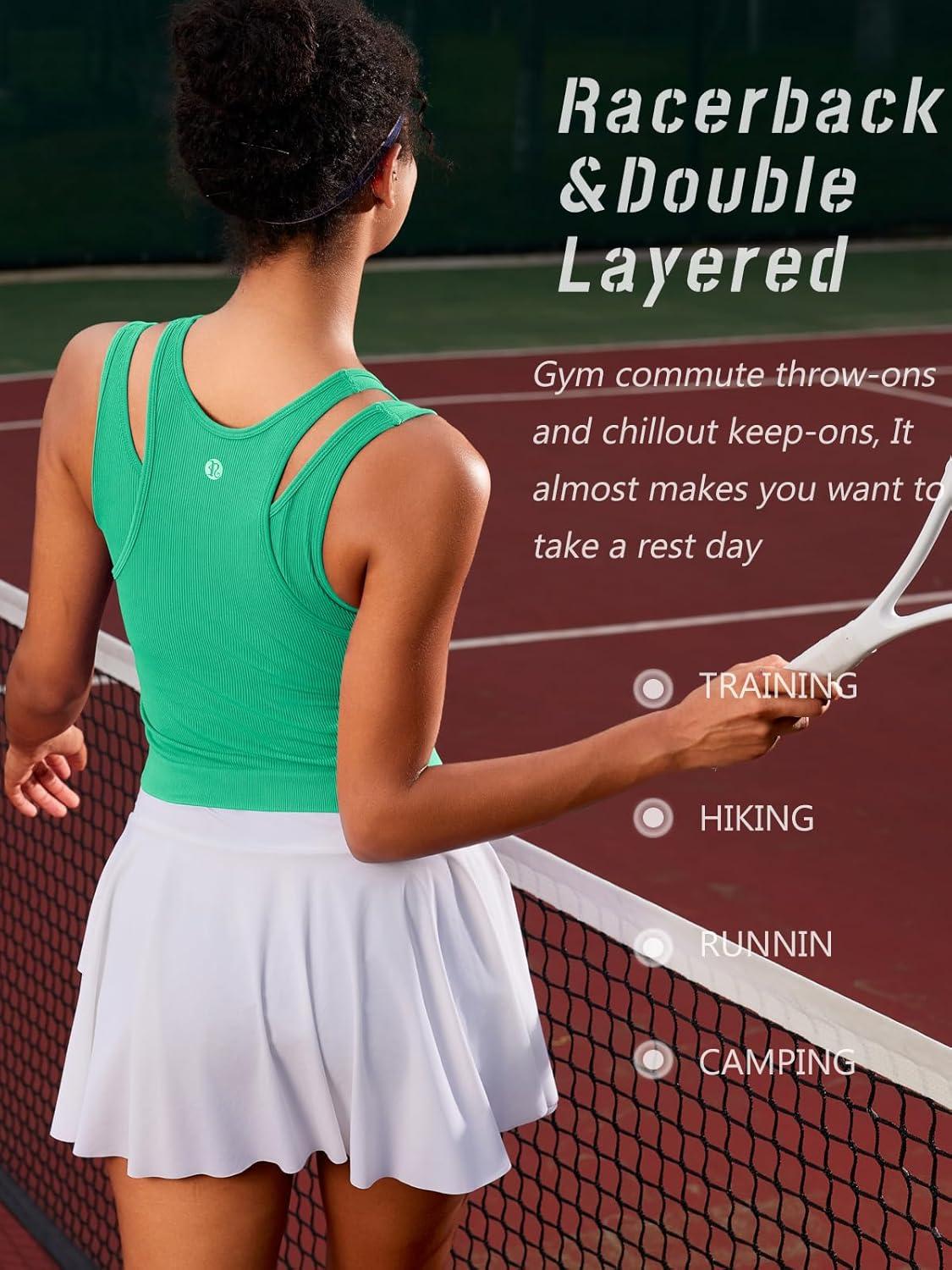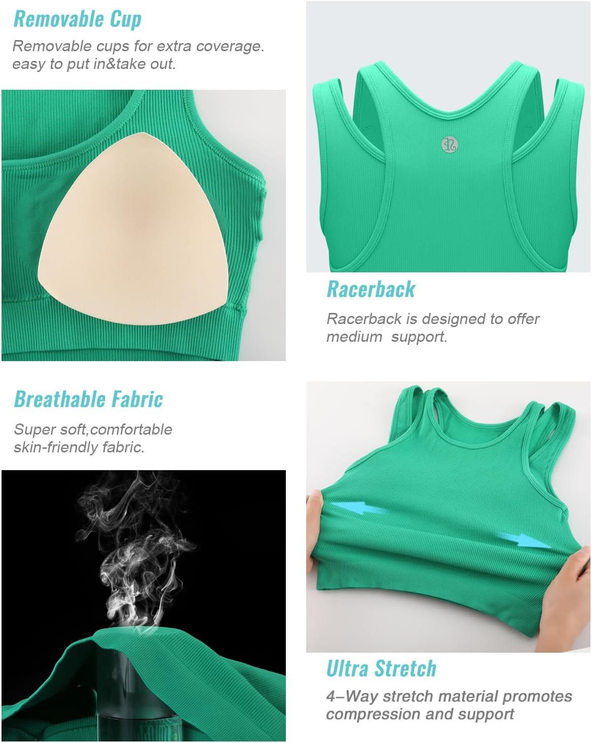 RUNNING GIRL Sports Bras for Women High Support,Seamless Ribbed Longline High Neck Sports Bra Racerback Padded Crop Top Yoga(C-light Green)