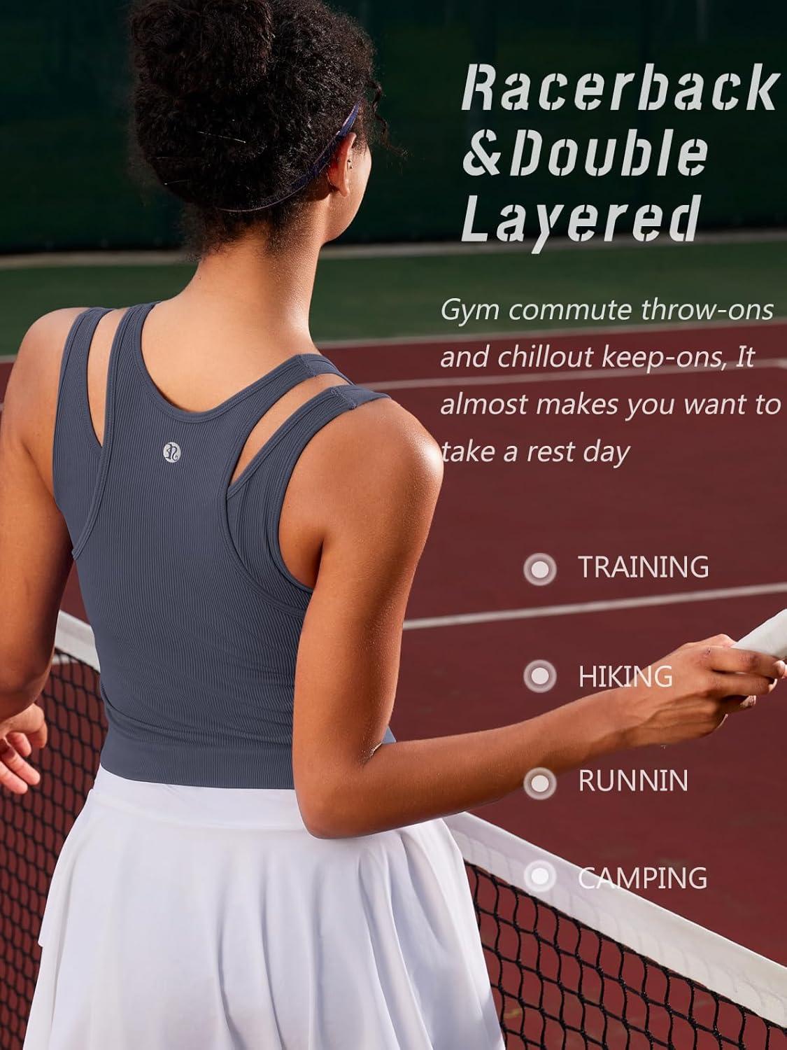 RUNNING GIRL Sports Bras for Women High Impact Seamless Ribbed Longline High Neck Workout Crop Tank Tops Padded(B-dark Grey)