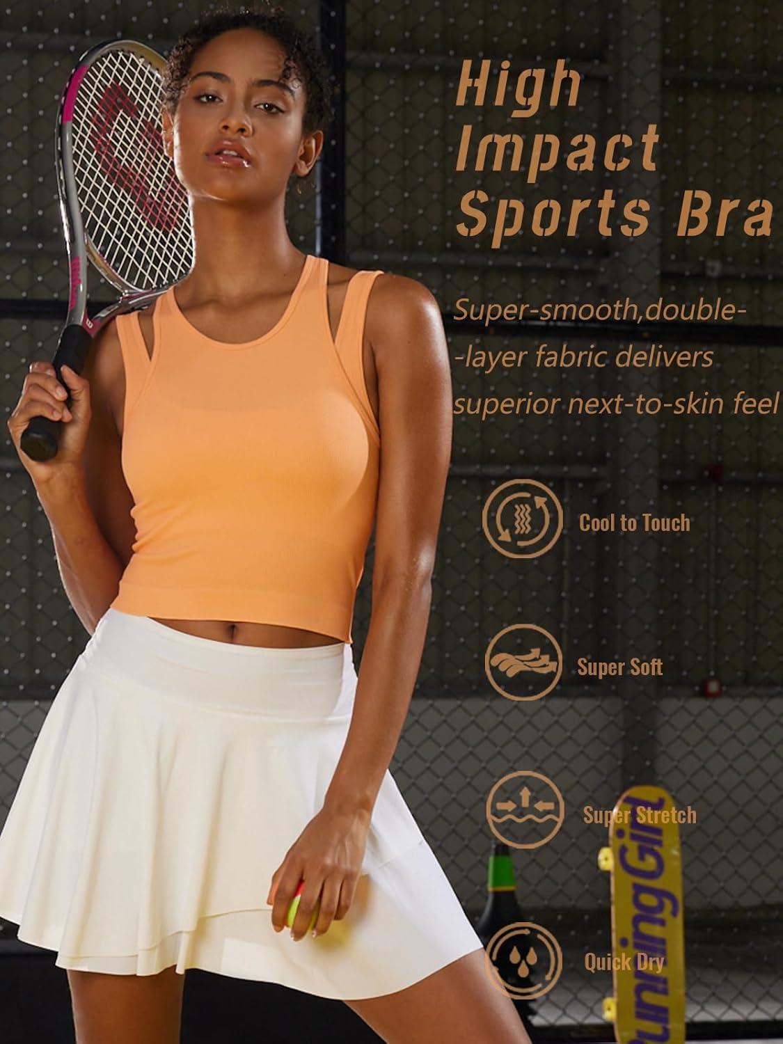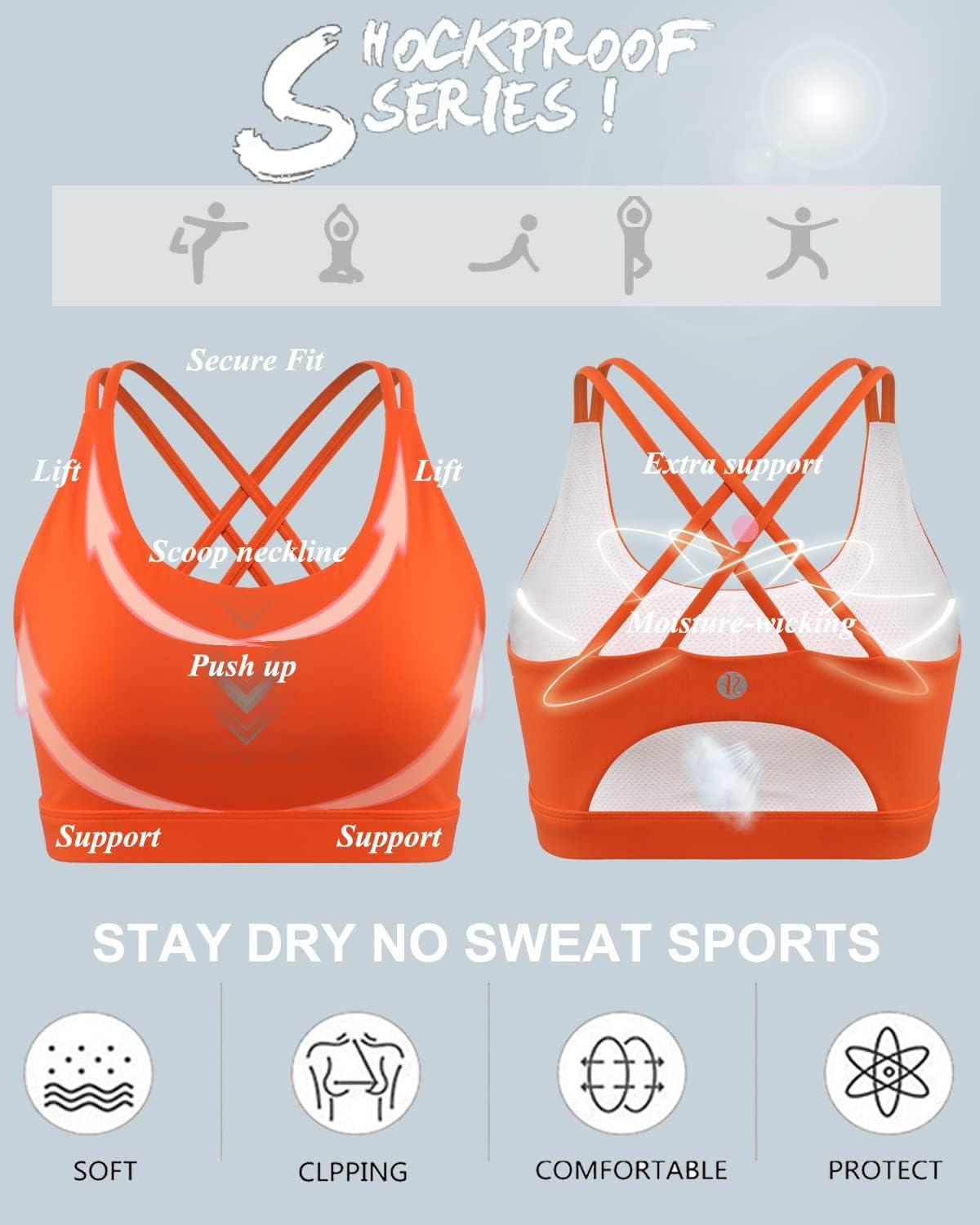 RUNNING GIRL High Impact Sports Bras for Women – Scoop Neck Strappy Sports Bra High Support Moulded Cup Workout Bra(A-orange)