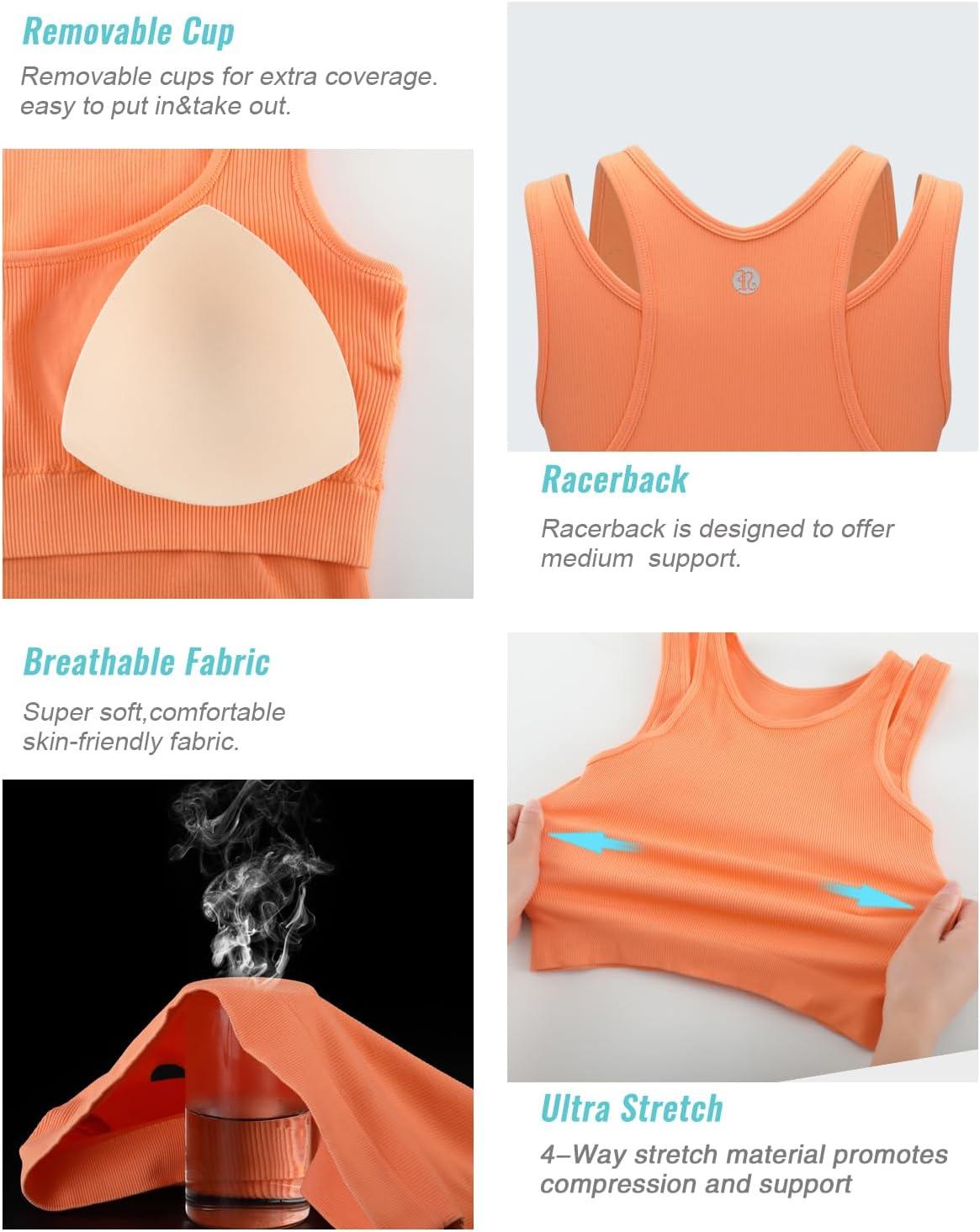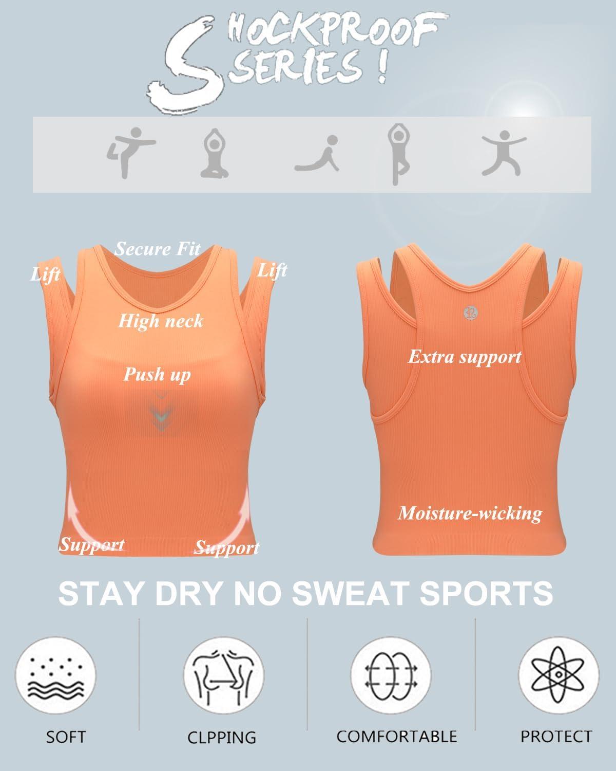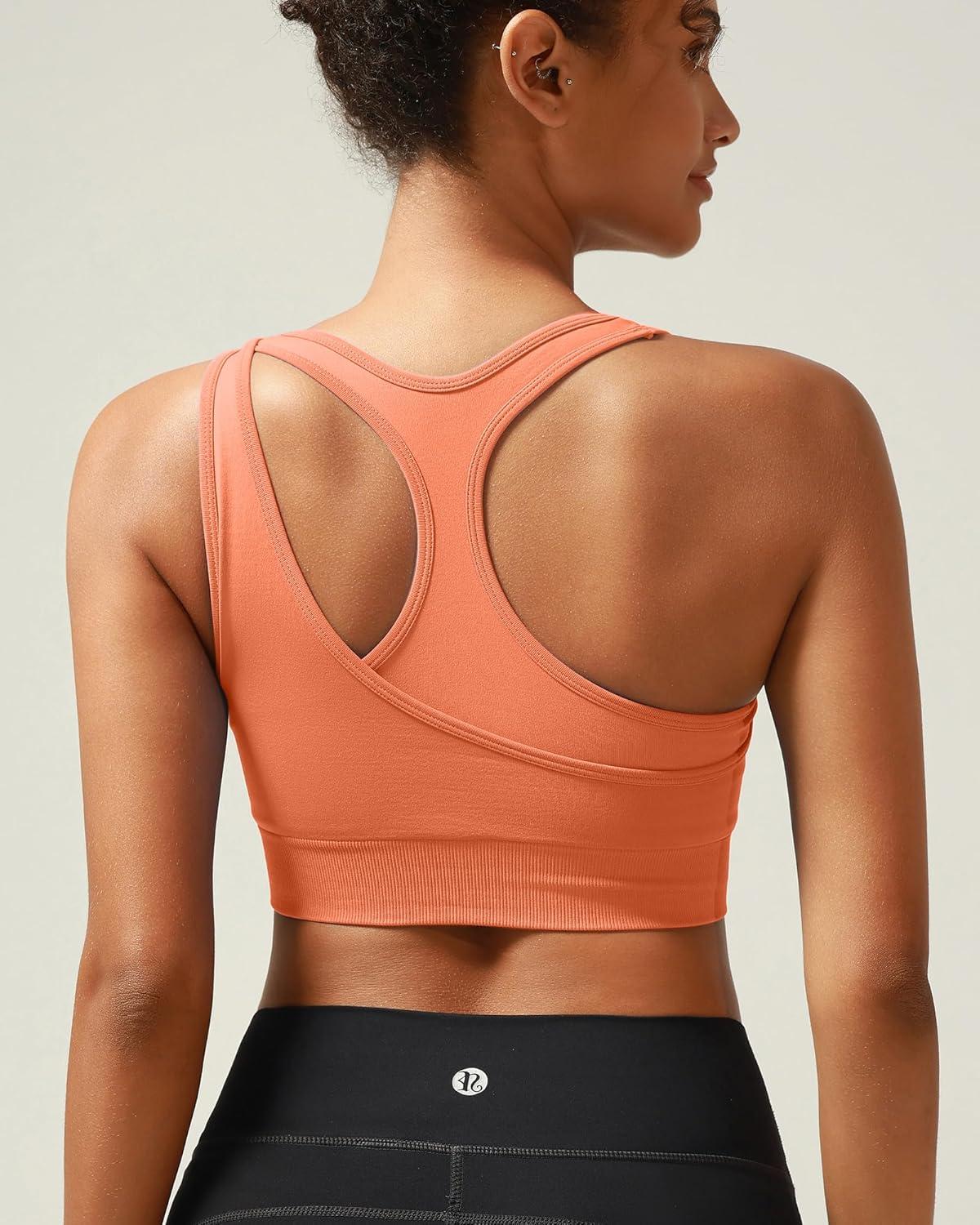 RUNNING GIRL Sports Bras for Women High Support,Seamless Ribbed Longline High Neck Sports Bra Racerback Padded Crop Top Yoga(B-light Orange)