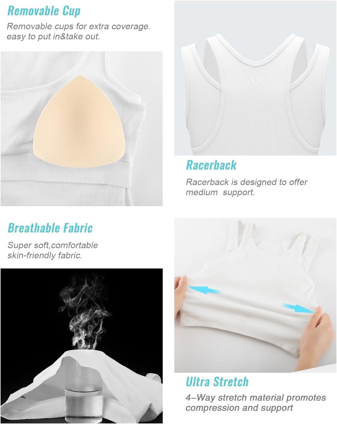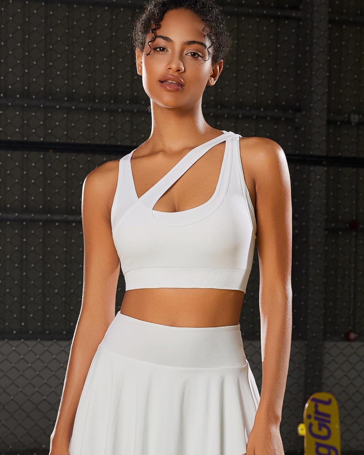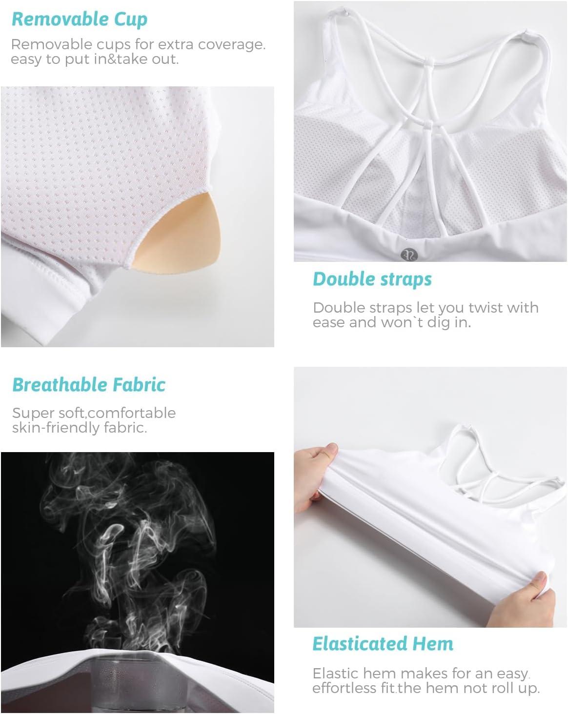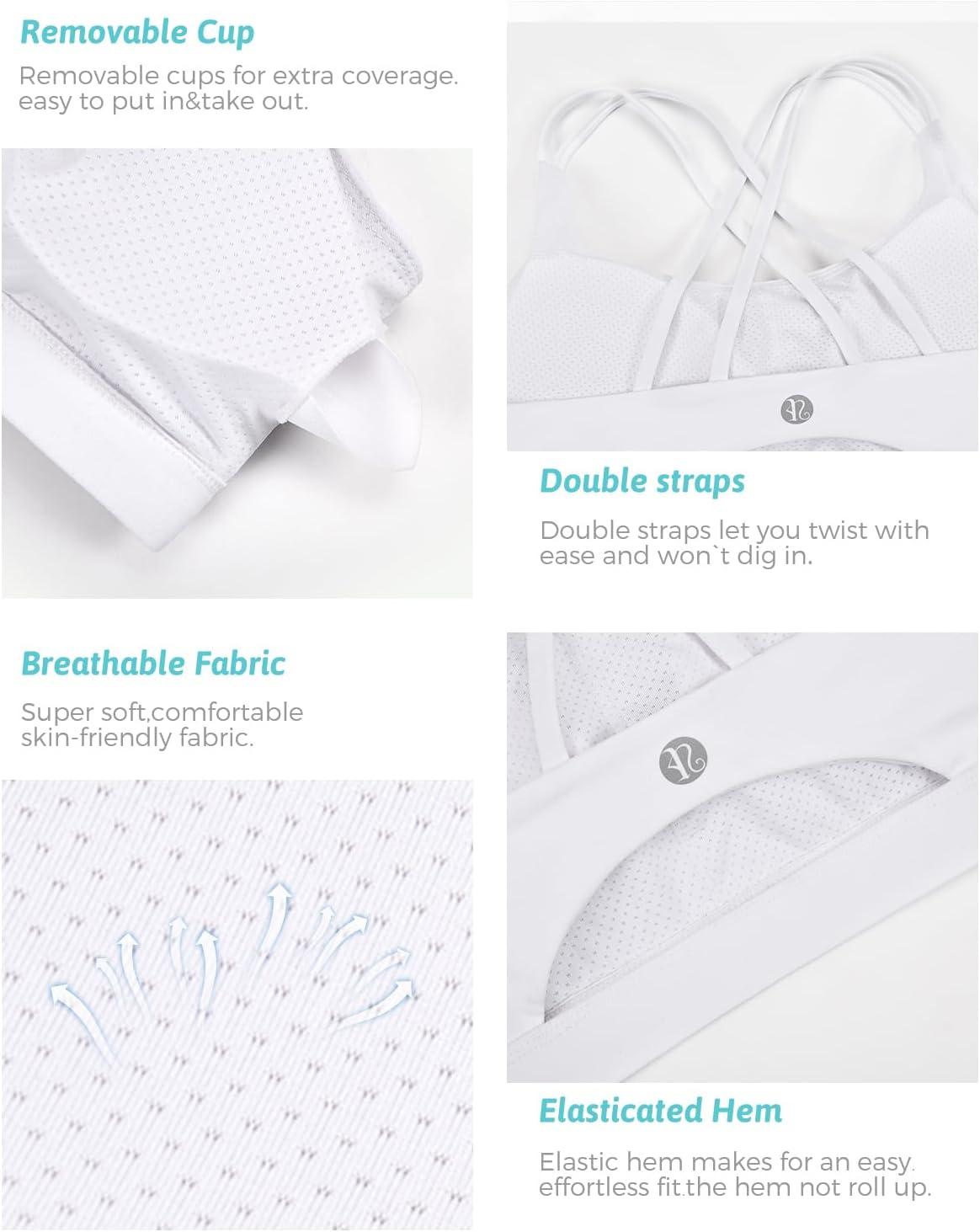 RUNNING GIRL Y-Back Sports Bras for Women, Medium Impact Wirefree Padded Bra Workout Crop Top Longline Sports Bra Push up(E-white)