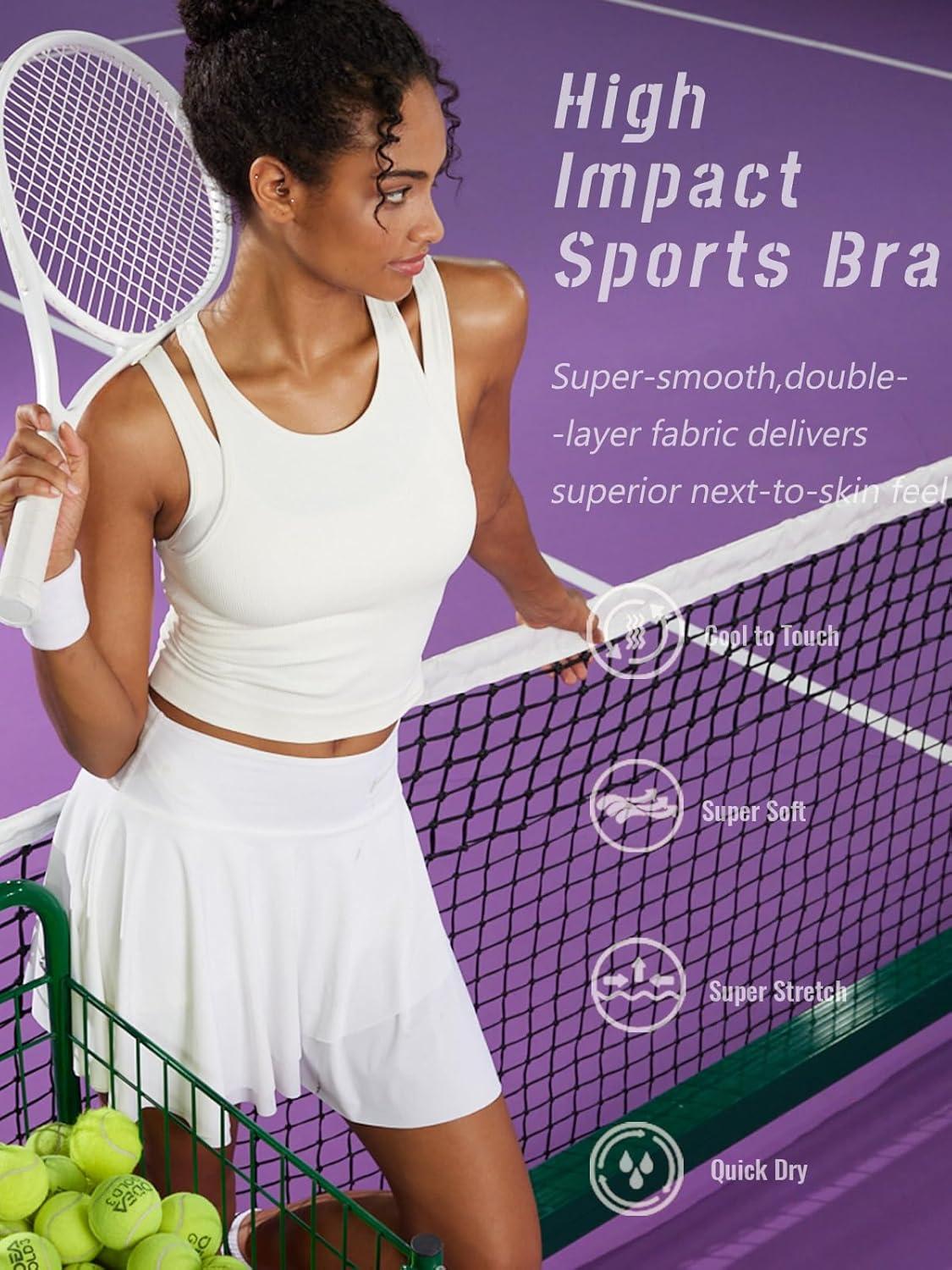 RUNNING GIRL High Impact Sports Bras for Women – Scoop Neck Strappy Sports Bra High Support Moulded Cup Workout Bra(A-white)