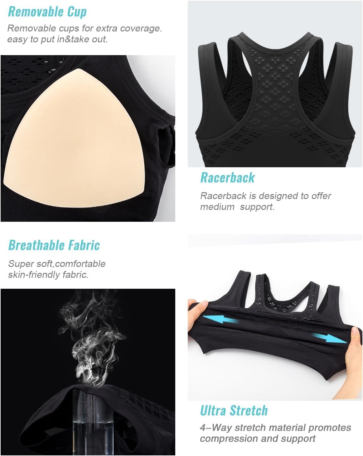 RUNNING GIRL Sports Bras for Women,Y-Back Medium Support Workout Sports Bra Padded Racerback Supportive Bras Push up(E-black)