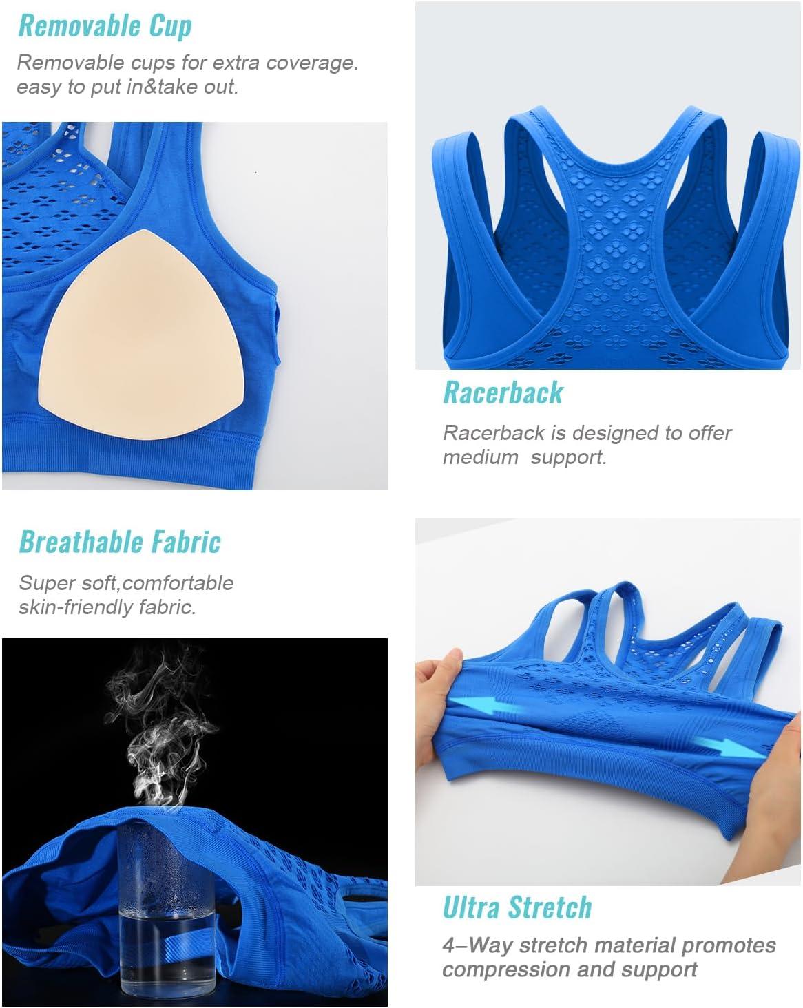 RUNNING GIRL Sports Bras for Women,Y-Back Medium Support Workout Sports Bra Padded Racerback Supportive Bras Push up(E-bright Blue)