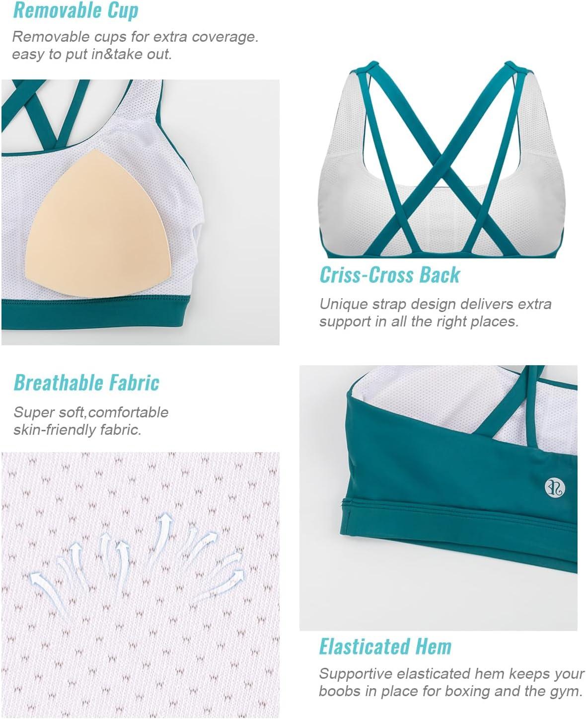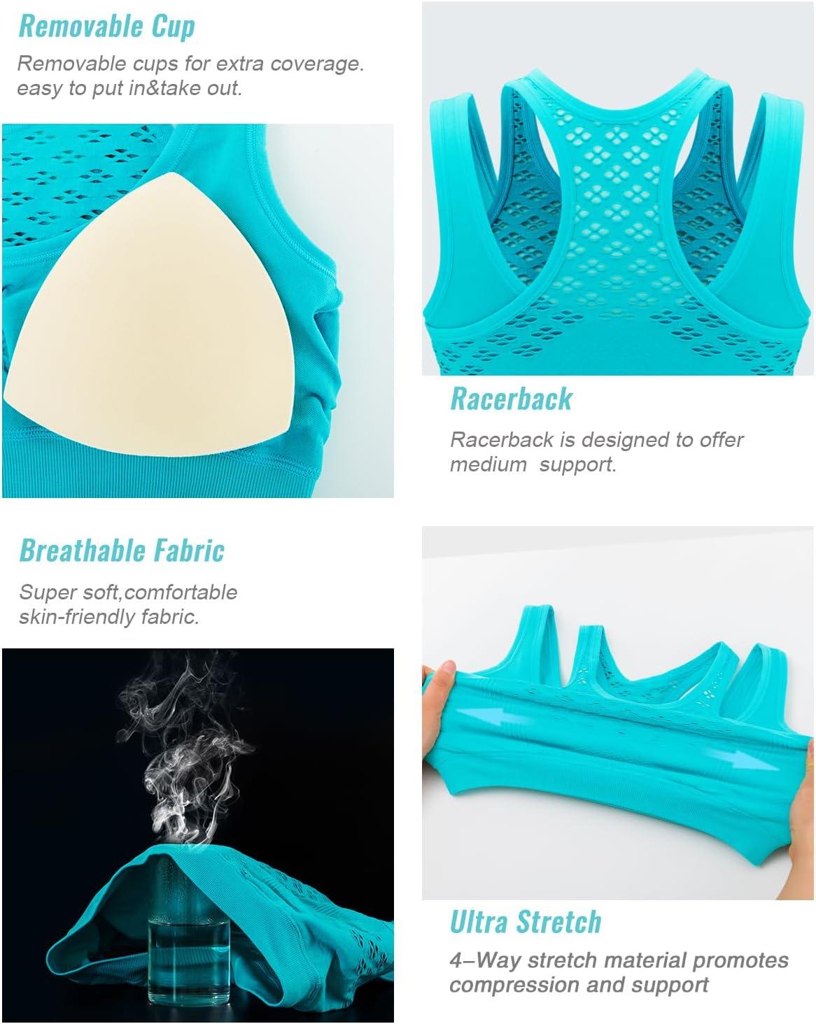 RUNNING GIRL Sports Bras for Women,Y-Back Medium Support Workout Sports Bra Padded Racerback Supportive Bras Push up(E-storm Teal)