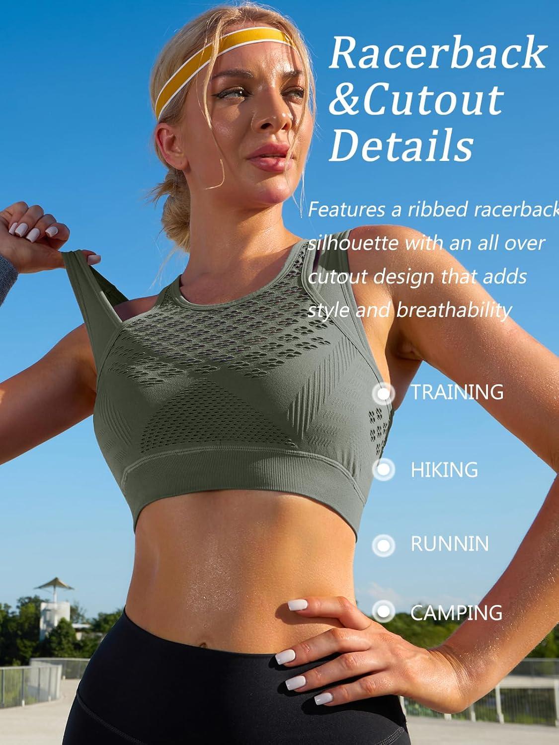 RUNNING GIRL High Impact Sports Bras for Women – Scoop Neck Strappy Sports Bra High Support Moulded Cup Workout Bra(A-ash Green)