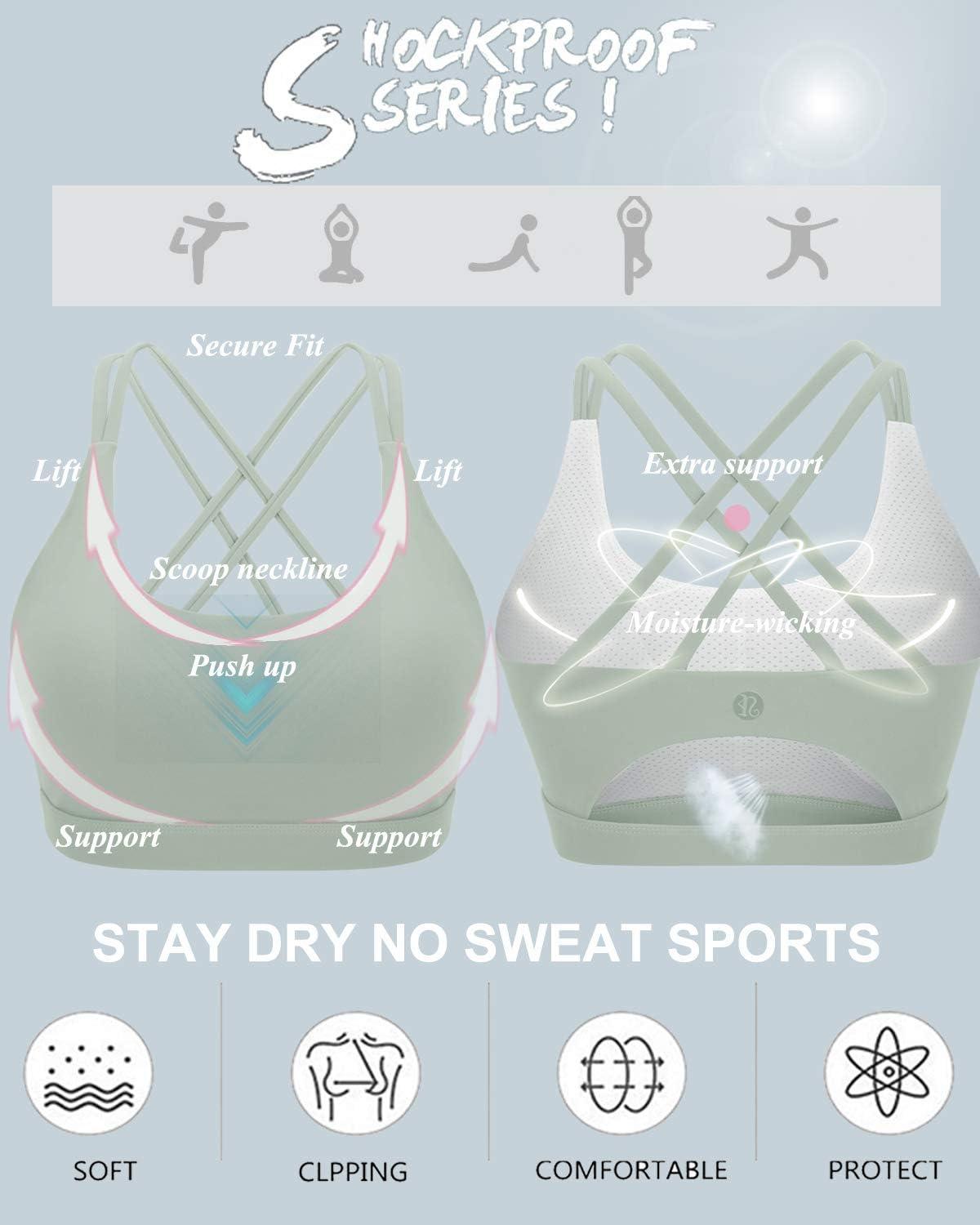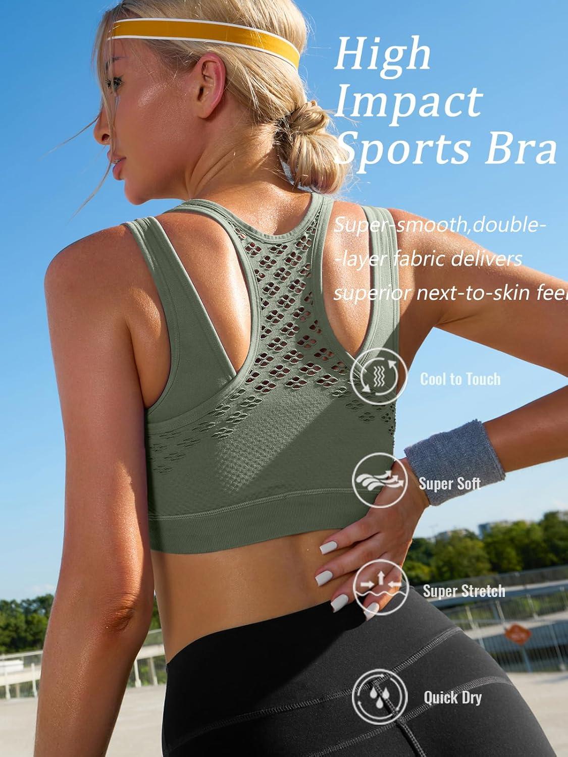 RUNNING GIRL High Impact Sports Bras for Women – Scoop Neck Strappy Sports Bra High Support Moulded Cup Workout Bra(B-ash Green)