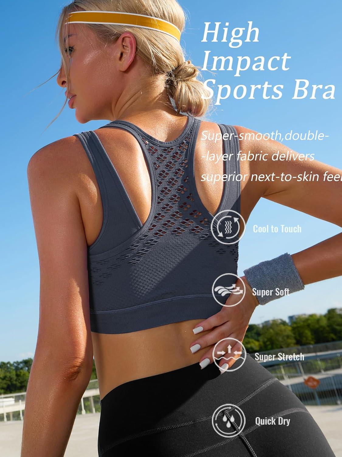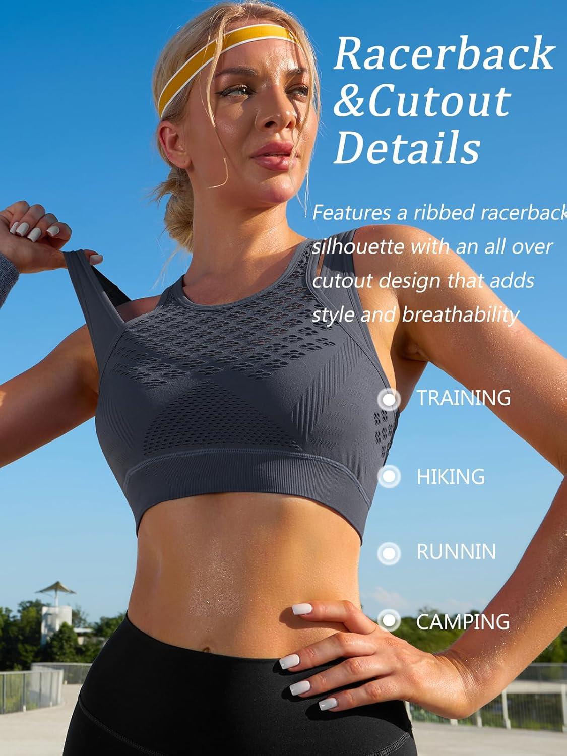 RUNNING GIRL Sports Bras for Women, Molded Cup High Impact Sports Bra Workout Bras for Women High Support Racerback(G-dark Grey)