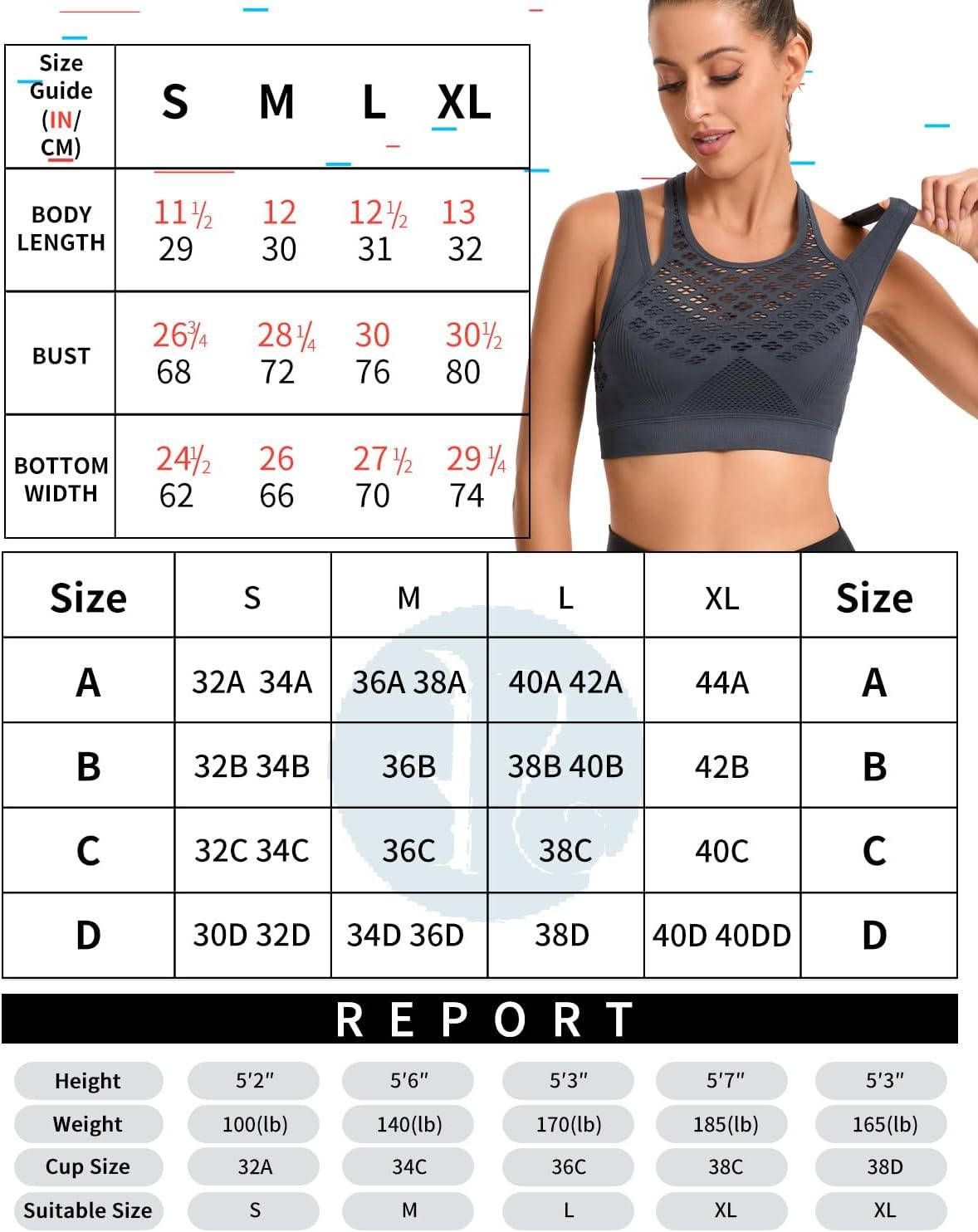 RUNNING GIRL High Impact Sports Bras for Women – Scoop Neck Strappy Sports Bra High Support Moulded Cup Workout Bra(A-dark Grey)
