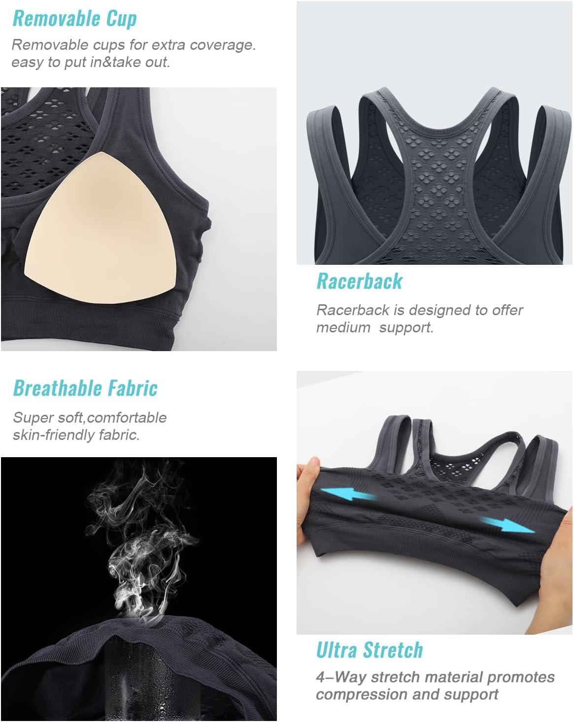 RUNNING GIRL Sports Bras for Women, Molded Cup High Impact Sports Bra Workout Bras for Women High Support Racerback(B-icy Grey)