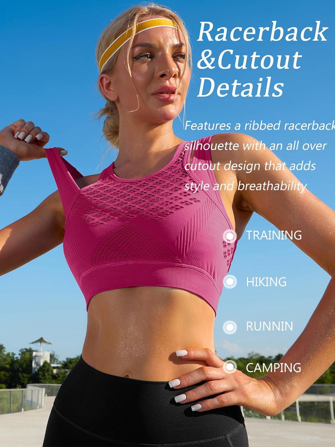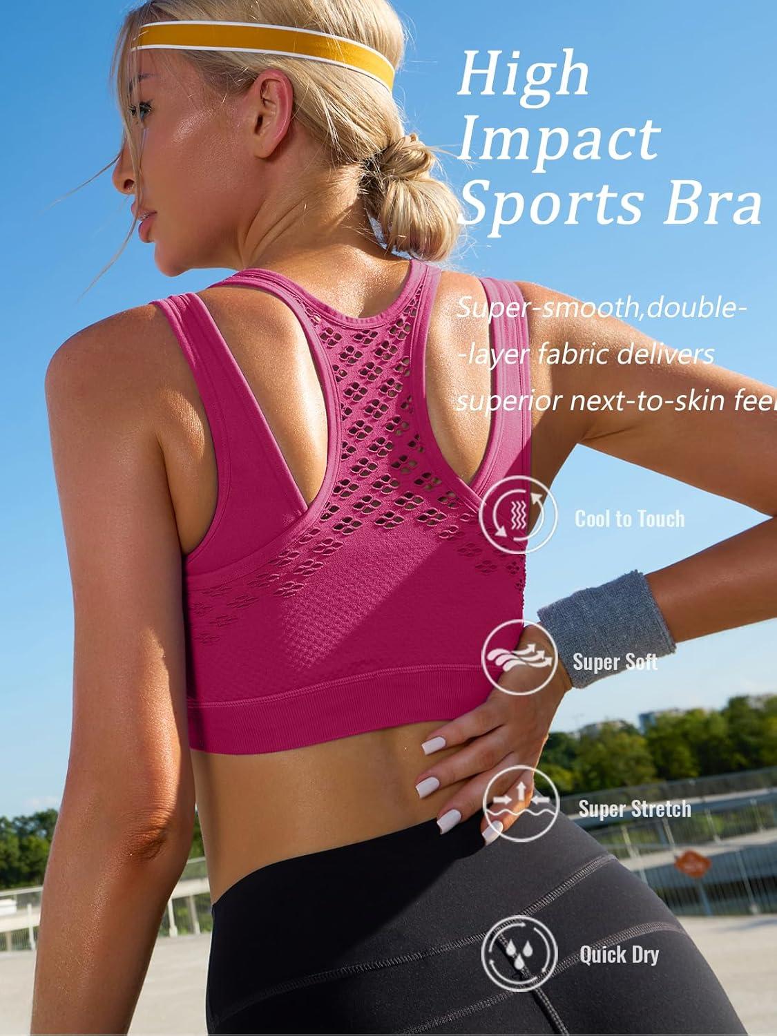 RUNNING GIRL Sports Bras for Women, Molded Cup High Impact Sports Bra Workout Bras for Women High Support Racerback(B-hot Pink)