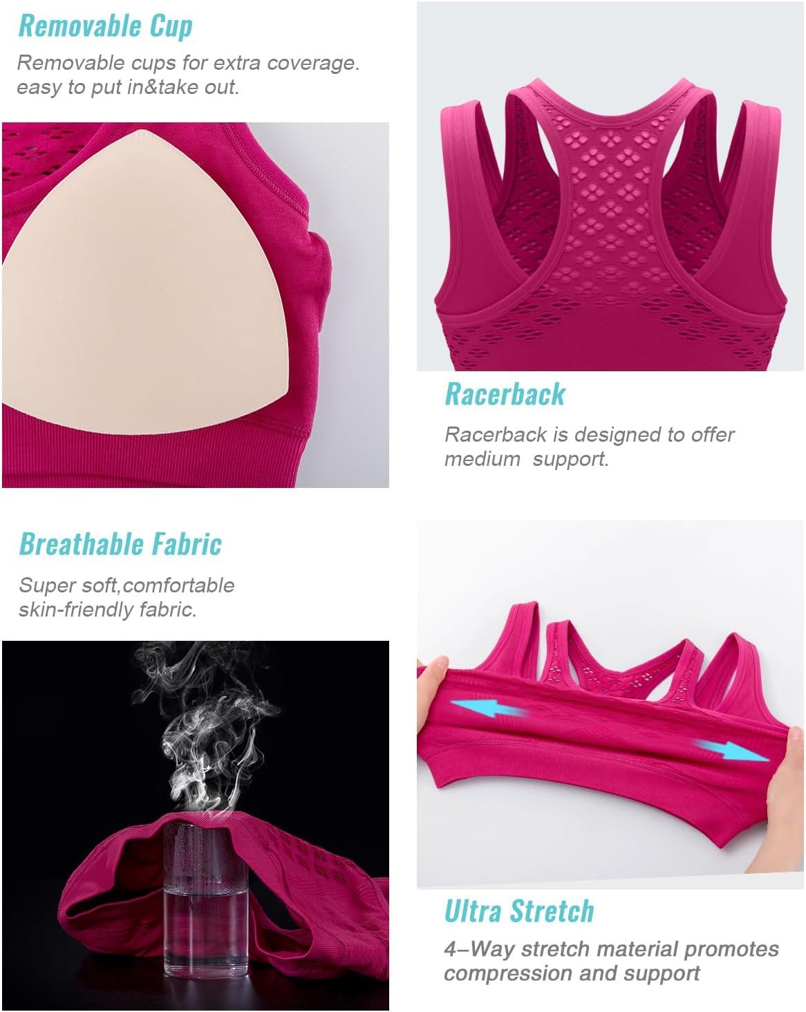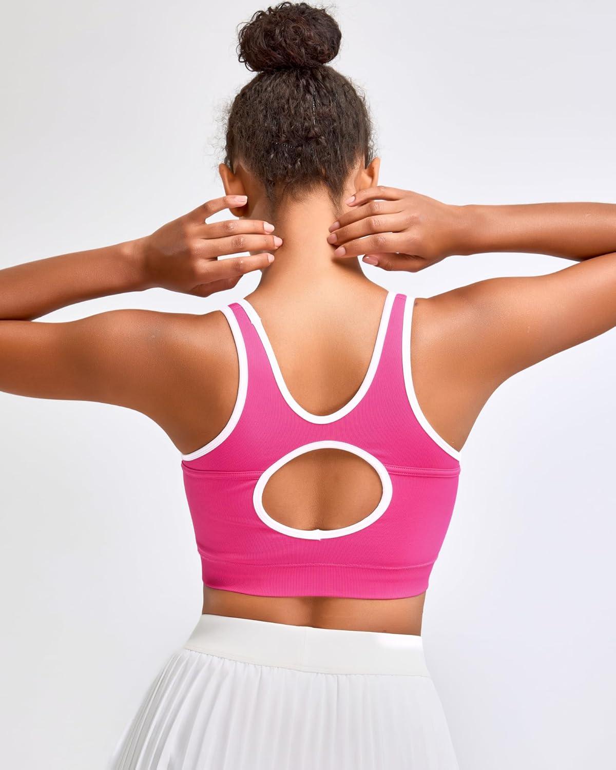 RUNNING GIRL Y-Back Sports Bras for Women, Medium Impact Wirefree Padded Bra Workout Crop Top Longline Sports Bra Push up(F-hot Pink)