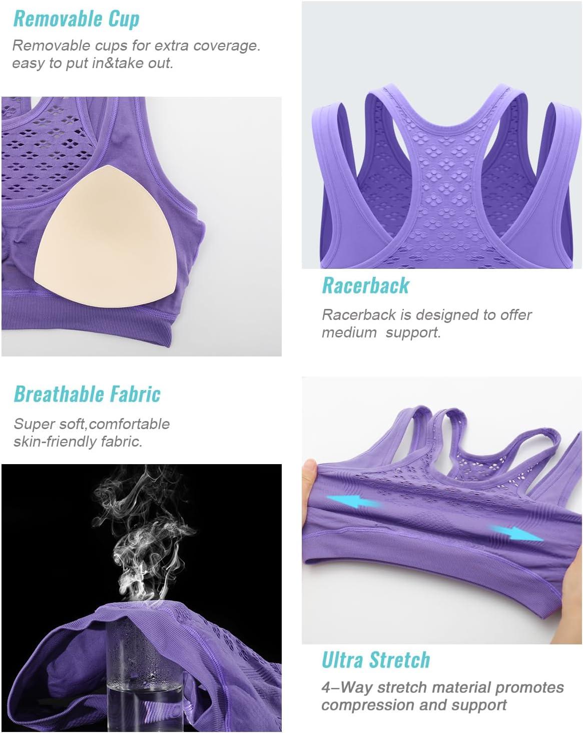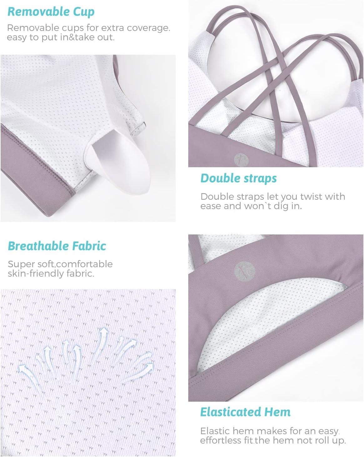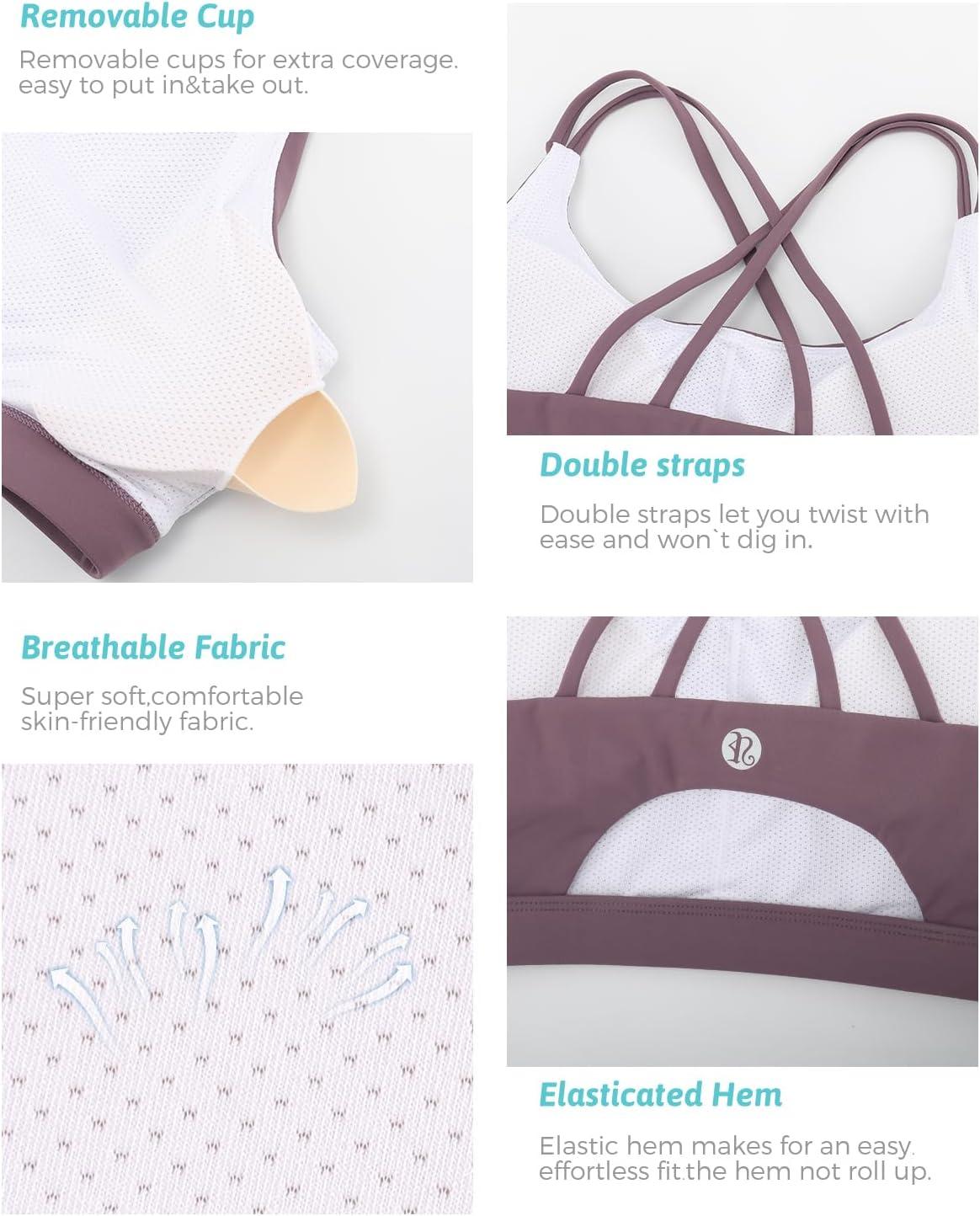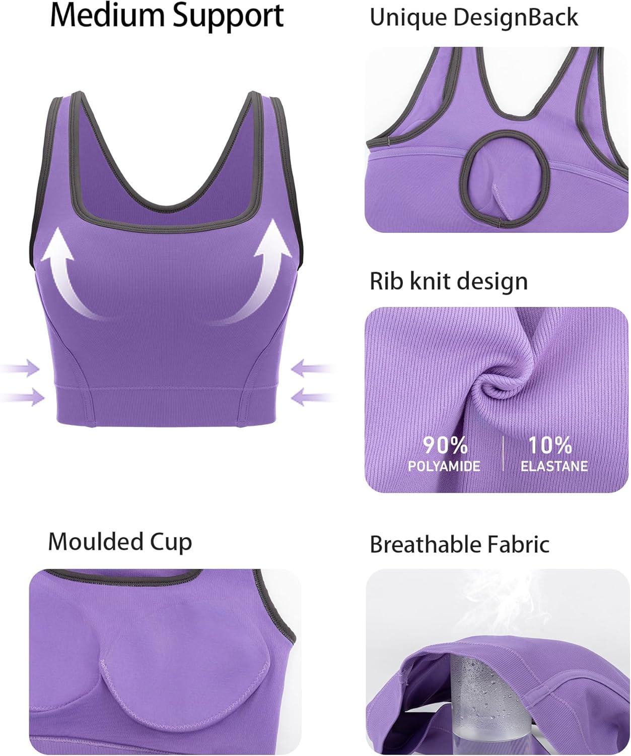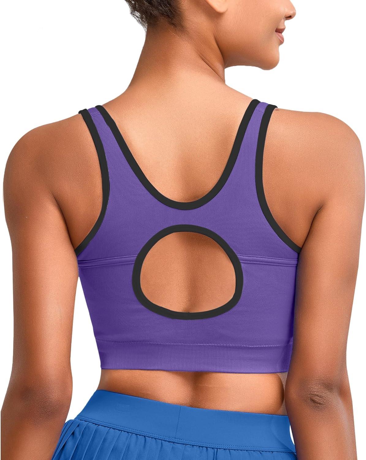 RUNNING GIRL Y-Back Sports Bras for Women, Medium Impact Wirefree Padded Bra Workout Crop Top Longline Sports Bra Push up(E-purple)