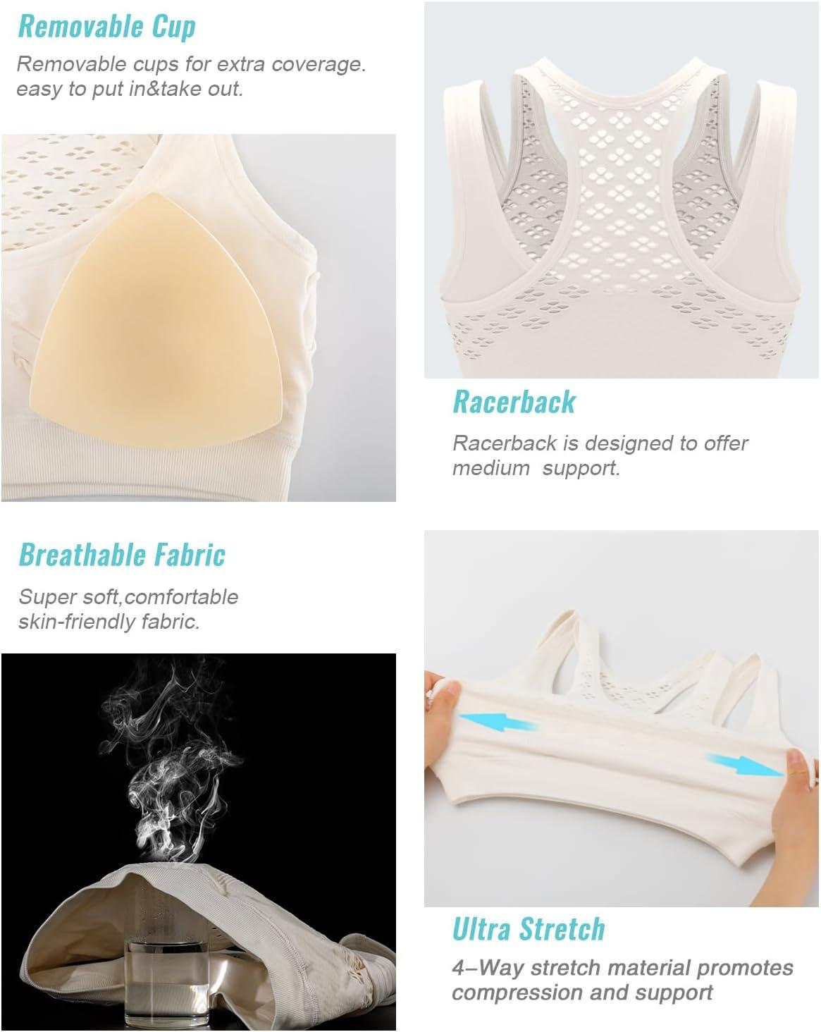 RUNNING GIRL Sports Bras for Women,Y-Back Medium Support Workout Sports Bra Padded Racerback Supportive Bras Push up(E-white)