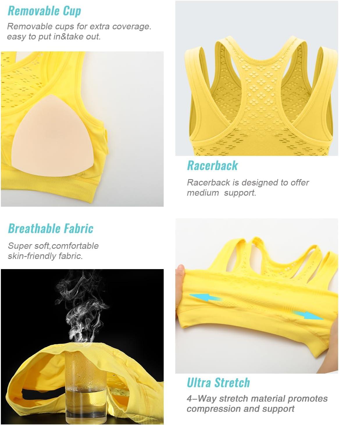 RUNNING GIRL High Impact Sports Bras for Women – Scoop Neck Strappy Sports Bra High Support Moulded Cup Workout Bra(A-yellow)