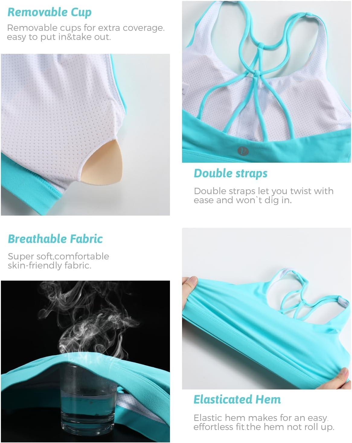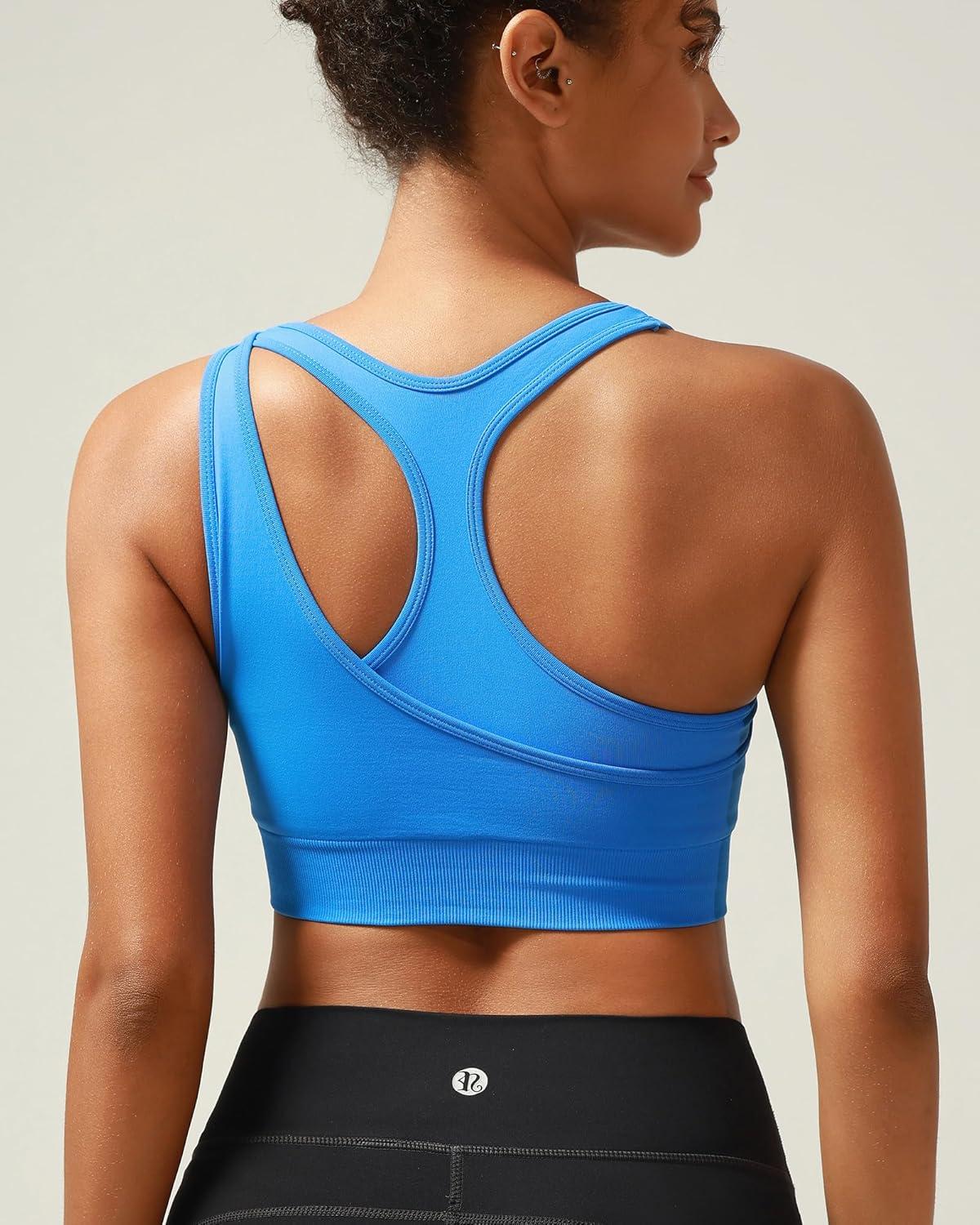 RUNNING GIRL Y-Back Sports Bras for Women, Medium Impact Wirefree Padded Bra Workout Crop Top Longline Sports Bra Push up(E-cerulean Blue)