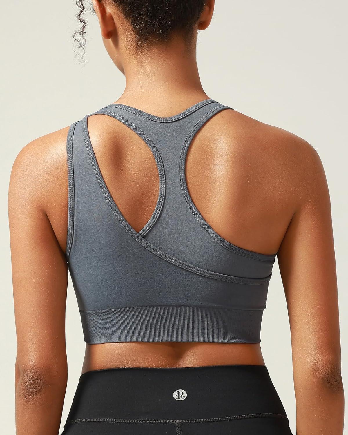 RUNNING GIRL Y-Back Sports Bras for Women, Medium Impact Wirefree Padded Bra Workout Crop Top Longline Sports Bra Push up(Icy Grey)