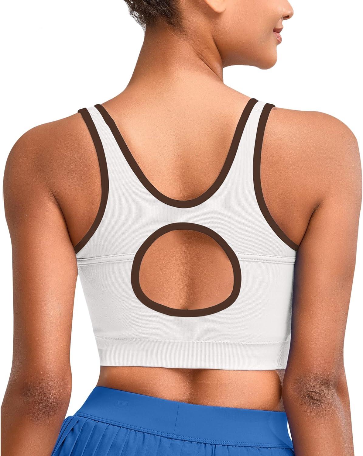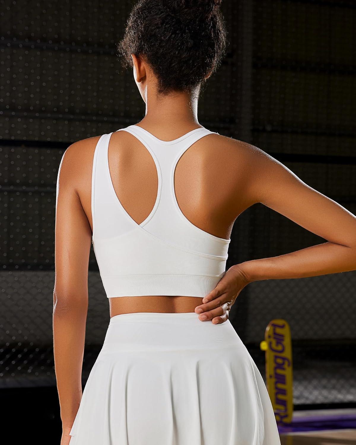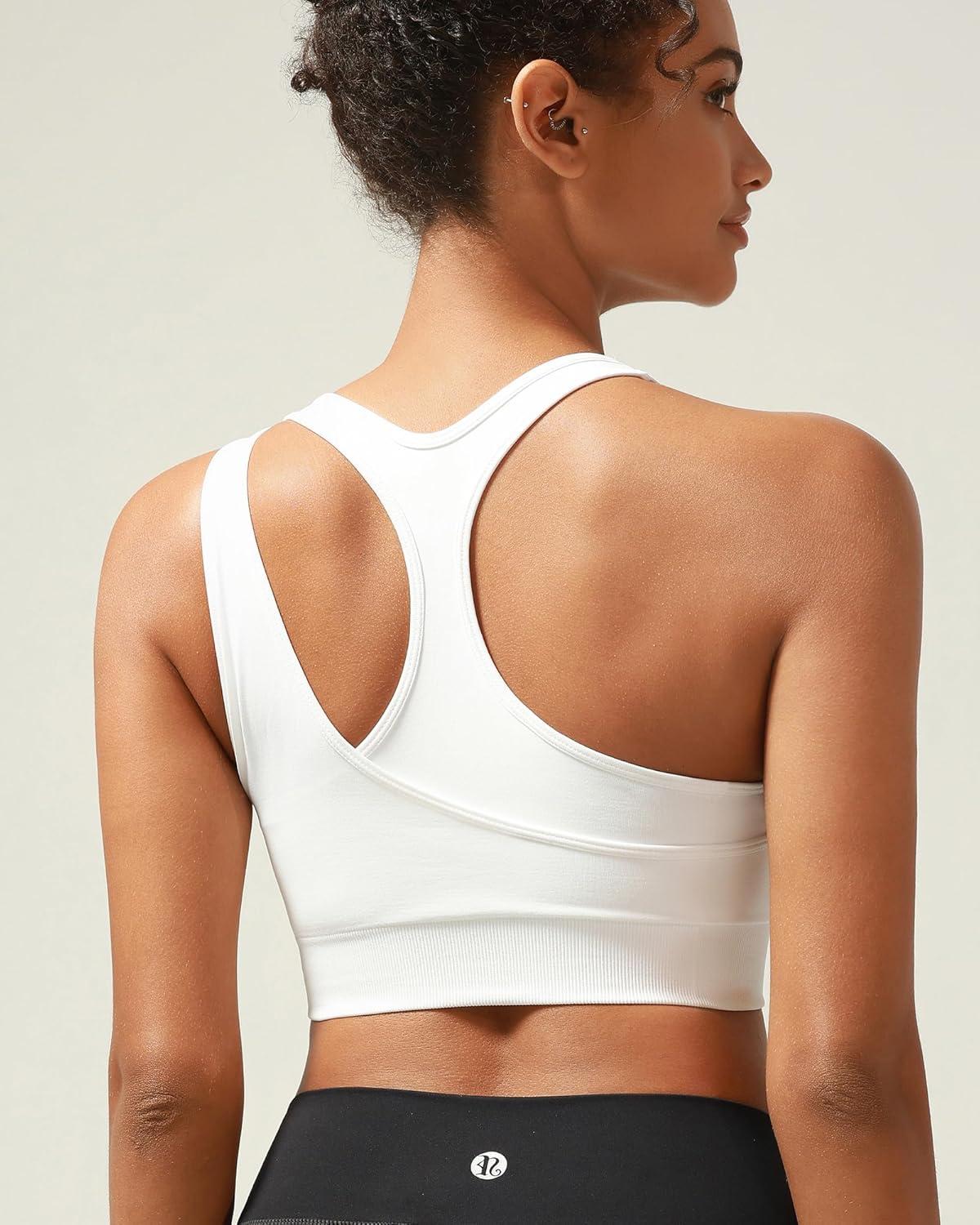 RUNNING GIRL Y-Back Sports Bras for Women, Medium Impact Wirefree Padded Bra Workout Crop Top Longline Sports Bra Push up(F-white)