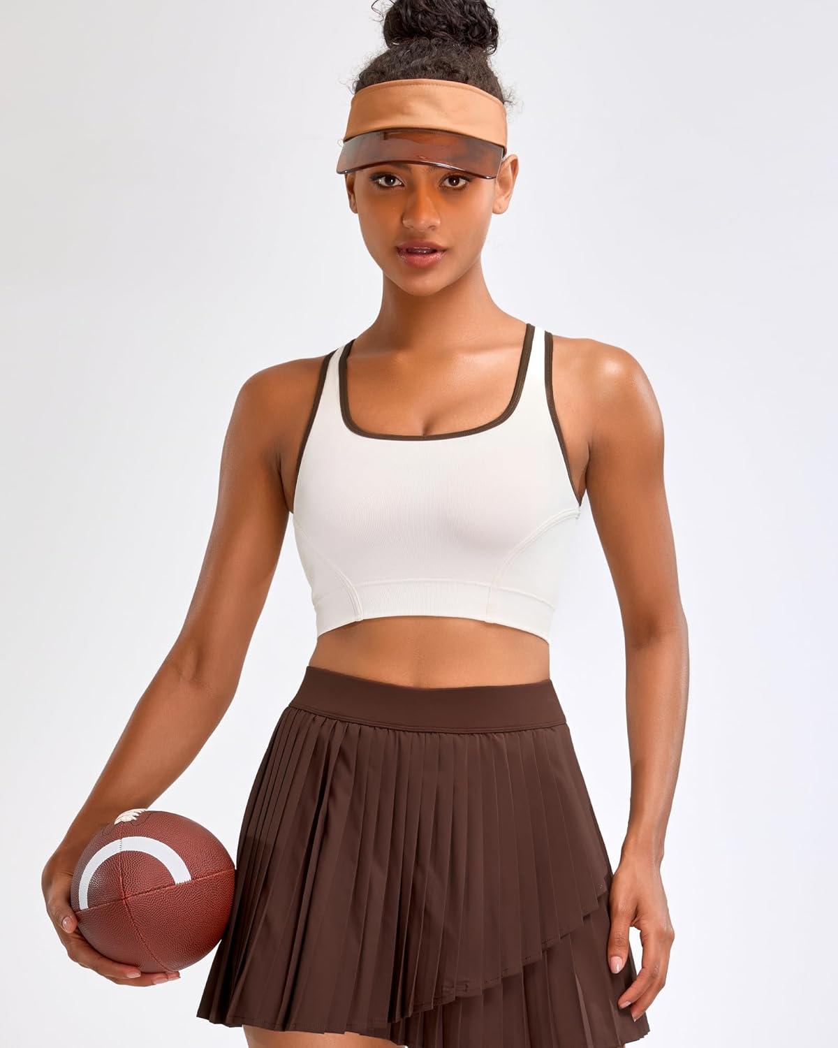 RUNNING GIRL Sports Bras for Women High Support,Seamless Ribbed Longline High Neck Sports Bra Racerback Padded Crop Top Yoga(Brown)