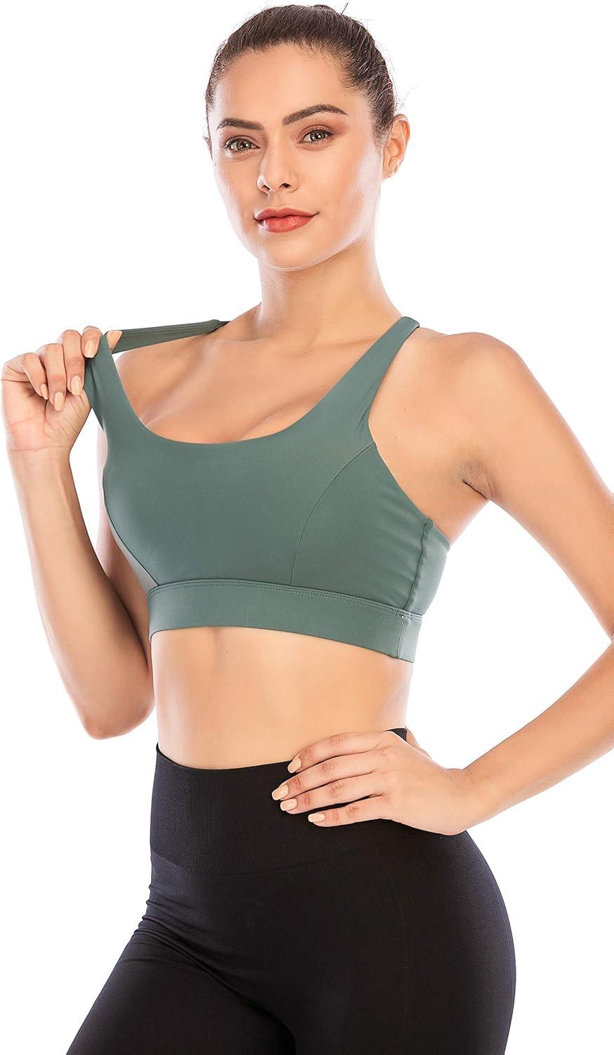 RUNNING GIRL Sports Bras for Women,Padded Sports Bra Tank Top Sexy Crisscross Back High Impact Longline Workout Yoga Bra(Oliver Green)
