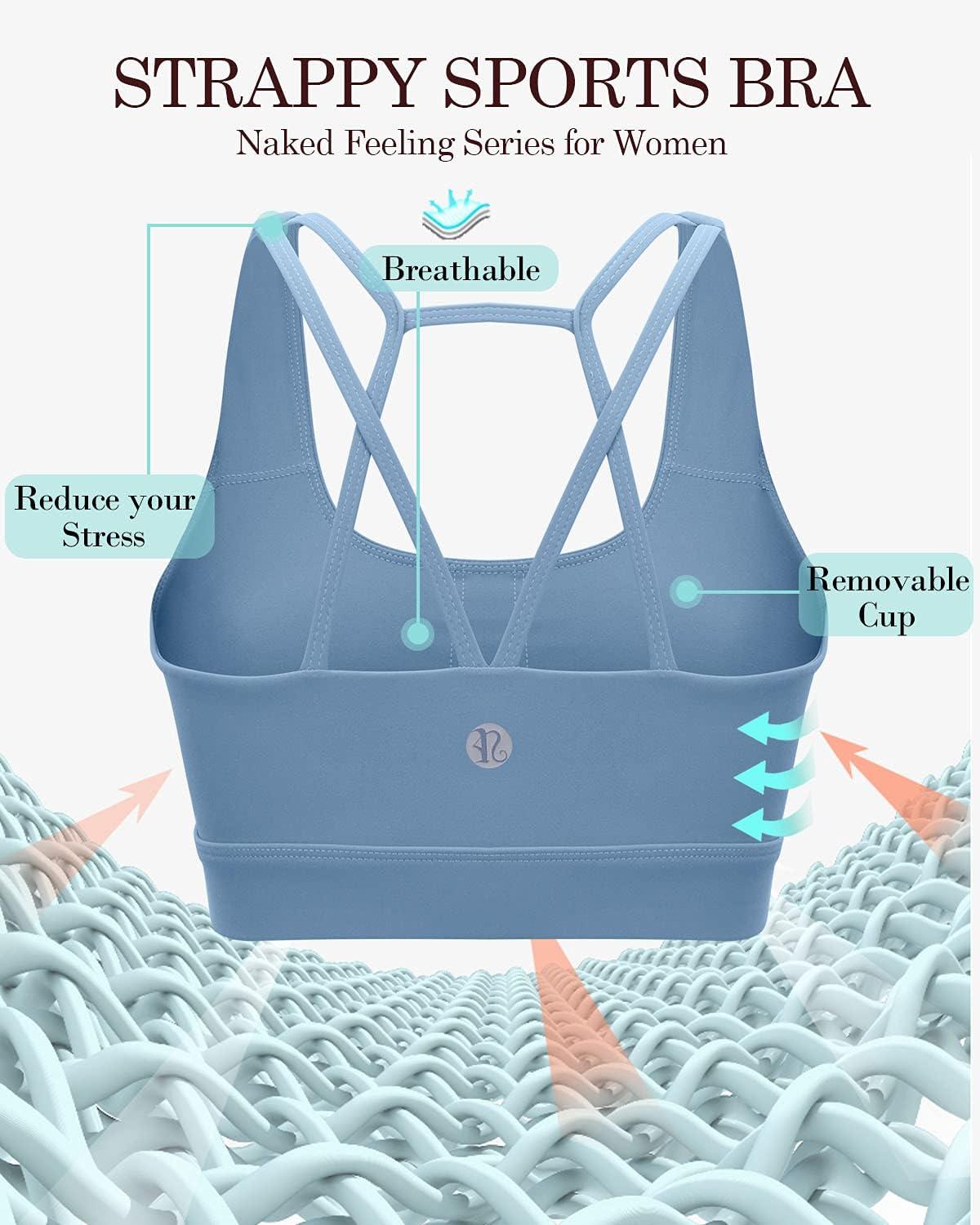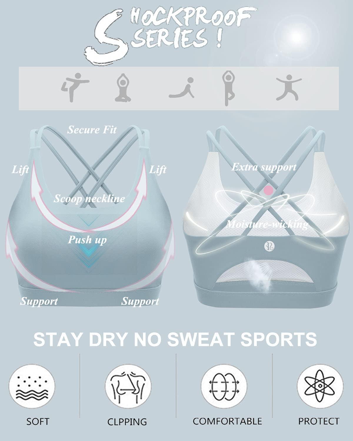 RUNNING GIRL High Impact Sports Bras for Women – Scoop Neck Strappy Sports Bra High Support Moulded Cup Workout Bra(A-light Blue)