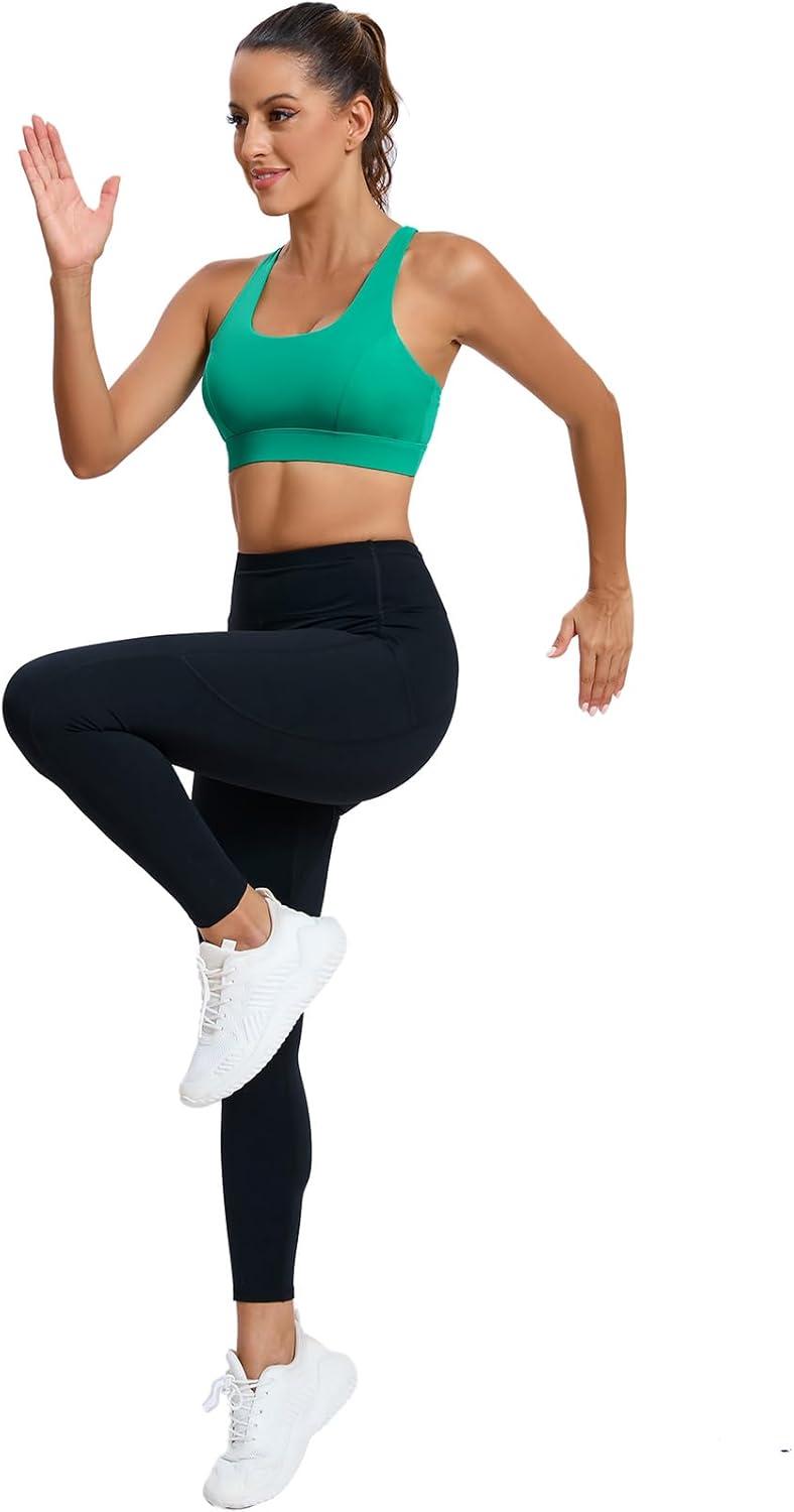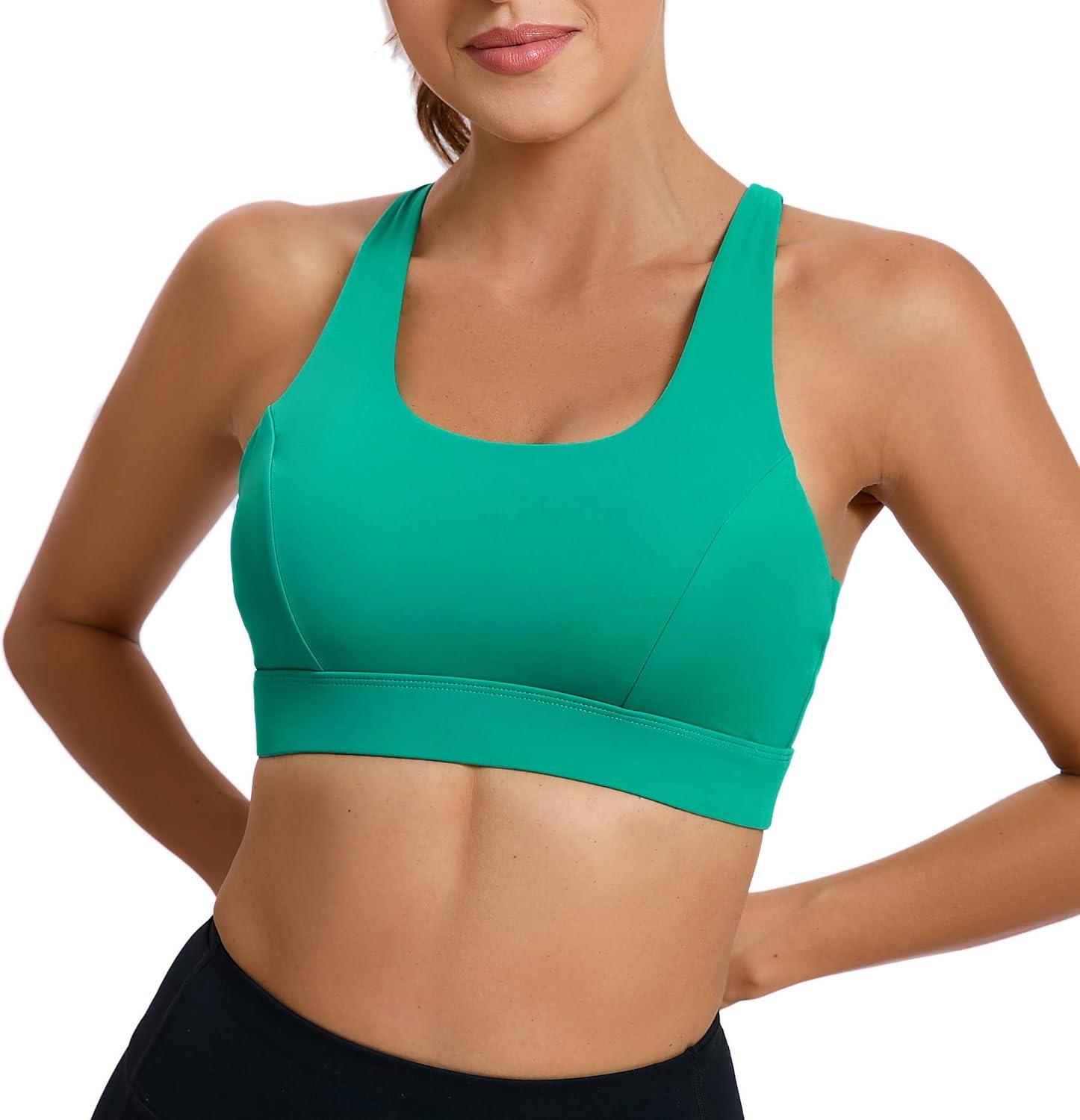 RUNNING GIRL Sports Bras for Women,Padded Sports Bra Tank Top Sexy Crisscross Back High Impact Longline Workout Yoga Bra(Green)