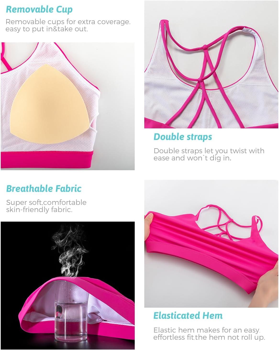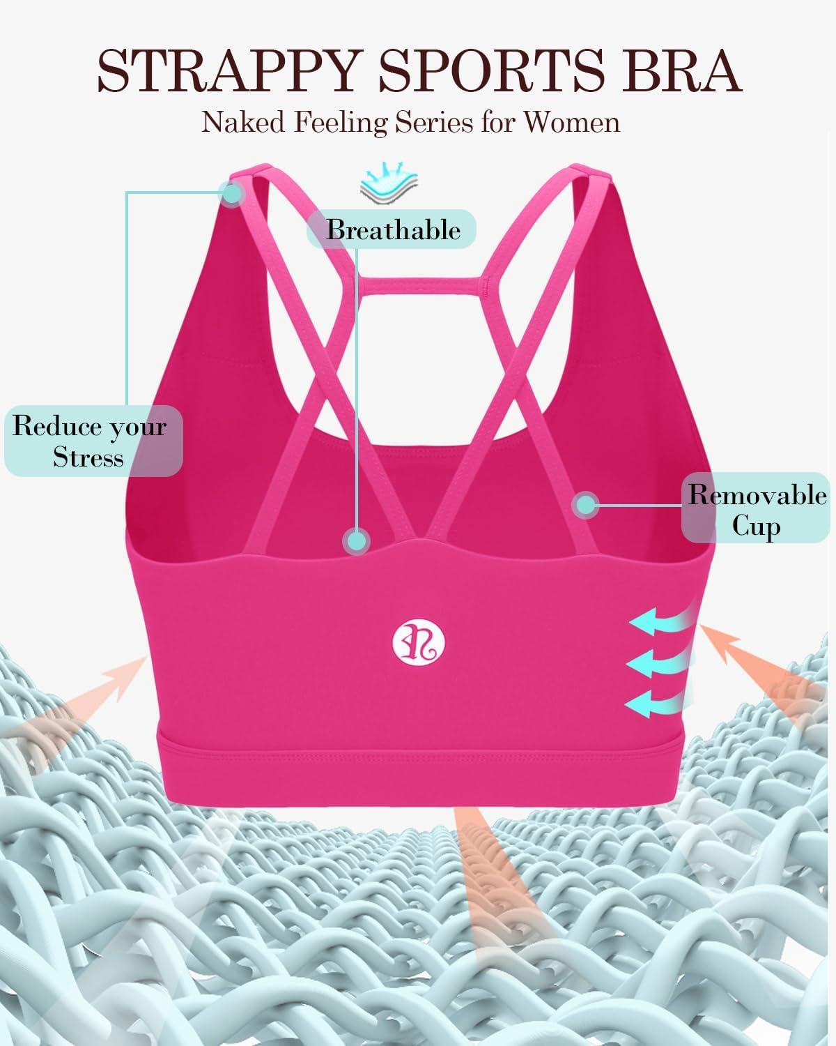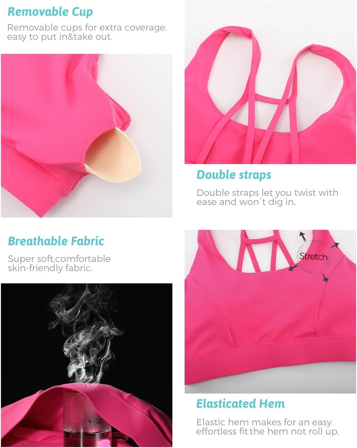 RUNNING GIRL Sports Bras for Women,Padded Sports Bra Tank Top Sexy Crisscross Back High Impact Longline Workout Yoga Bra(1-hot Pink)
