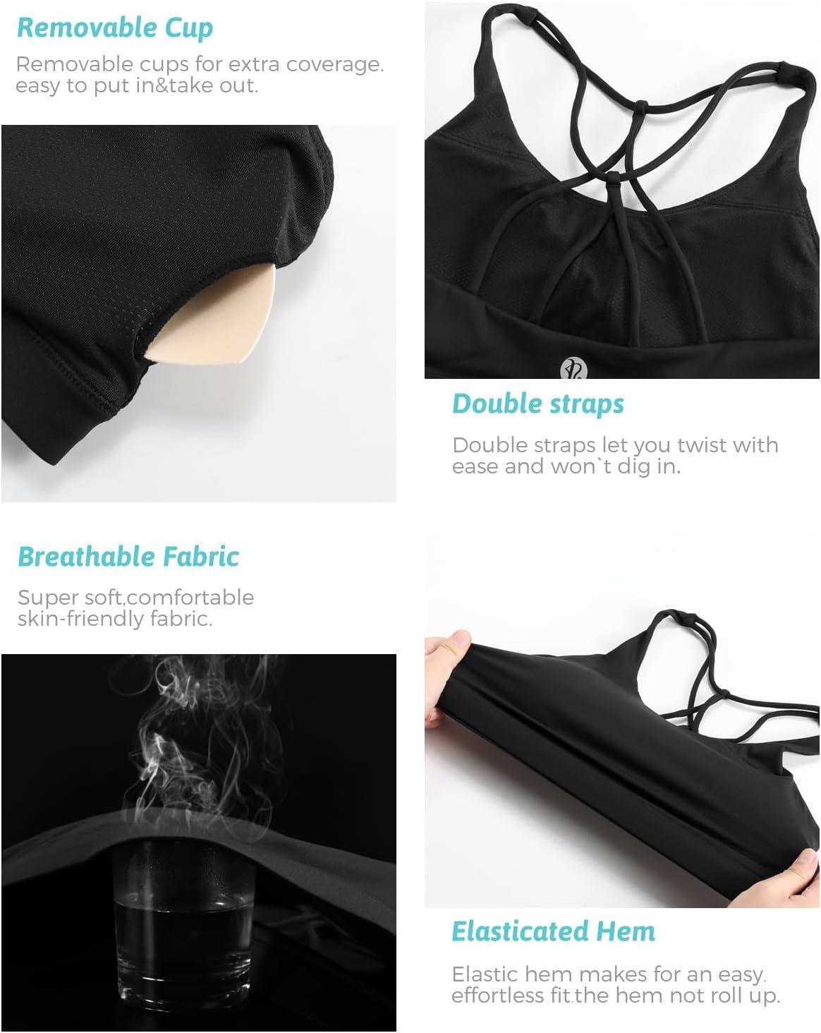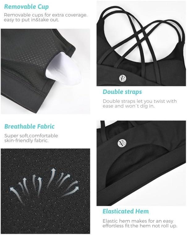 RUNNING GIRL Sports Bras for Women,Padded Sports Bra Tank Top Sexy Crisscross Back High Impact Longline Workout Yoga Bra(2-black)