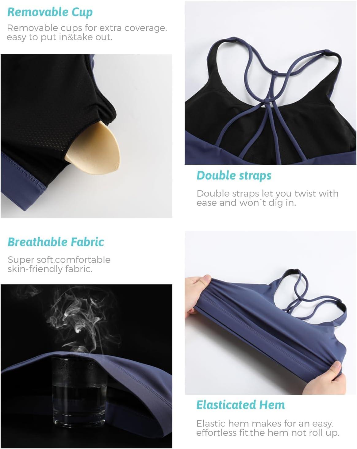 RUNNING GIRL High Impact Sports Bras for Women – Scoop Neck Strappy Sports Bra High Support Moulded Cup Workout Bra(B-navy Blue)