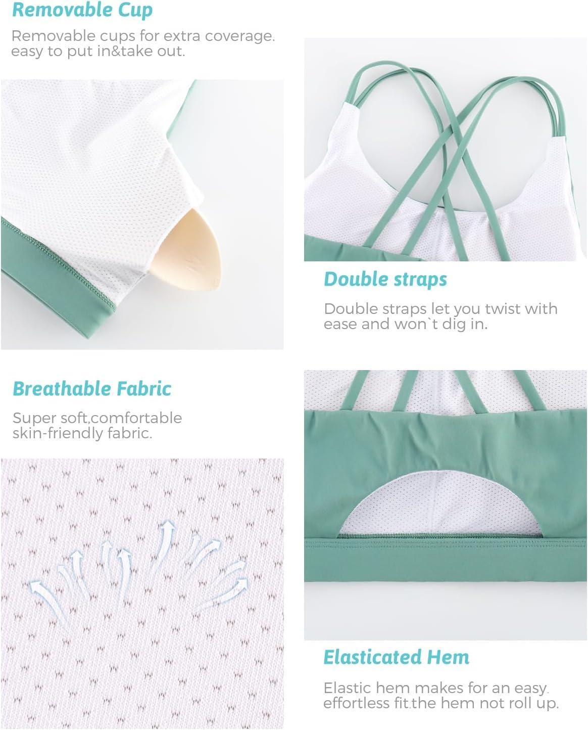 RUNNING GIRL Y-Back Sports Bras for Women, Medium Impact Wirefree Padded Bra Workout Crop Top Longline Sports Bra Push up(Green)