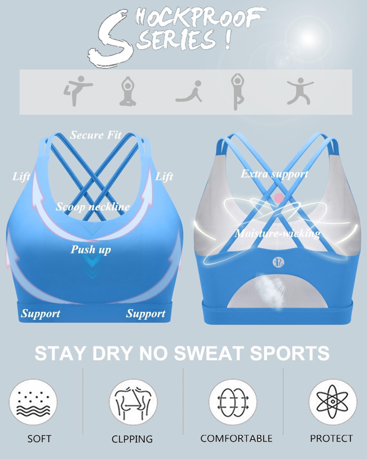 RUNNING GIRL High Impact Sports Bras for Women – Scoop Neck Strappy Sports Bra High Support Moulded Cup Workout Bra(B-bright Blue)