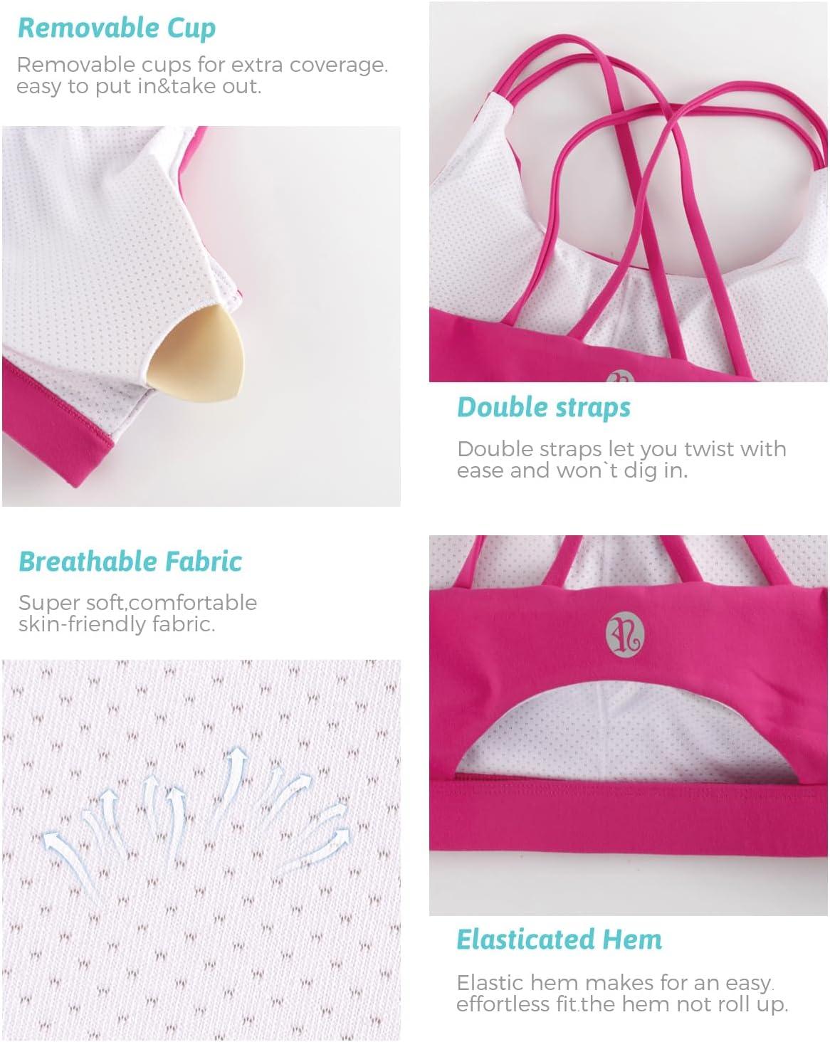 RUNNING GIRL Y-Back Sports Bras for Women, Medium Impact Wirefree Padded Bra Workout Crop Top Longline Sports Bra Push up(D-pink)