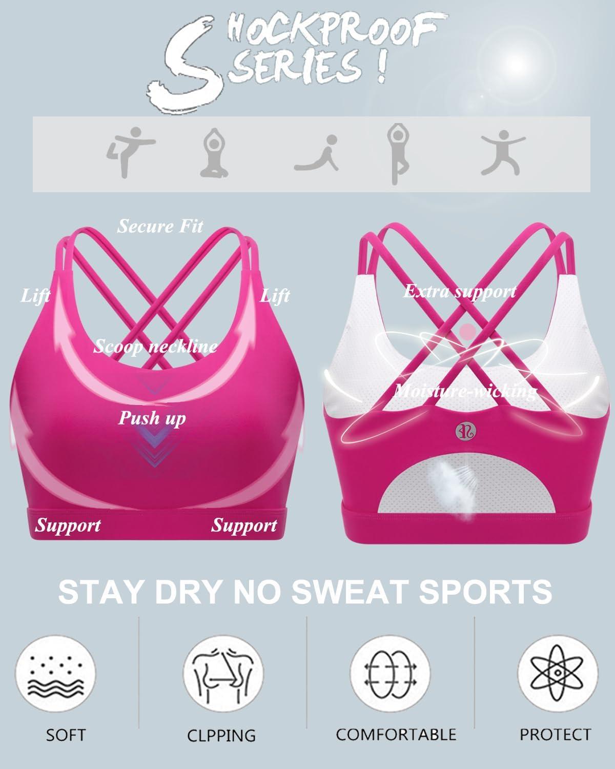 RUNNING GIRL High Impact Sports Bras for Women – Scoop Neck Strappy Sports Bra High Support Moulded Cup Workout Bra(B-hot Pink)